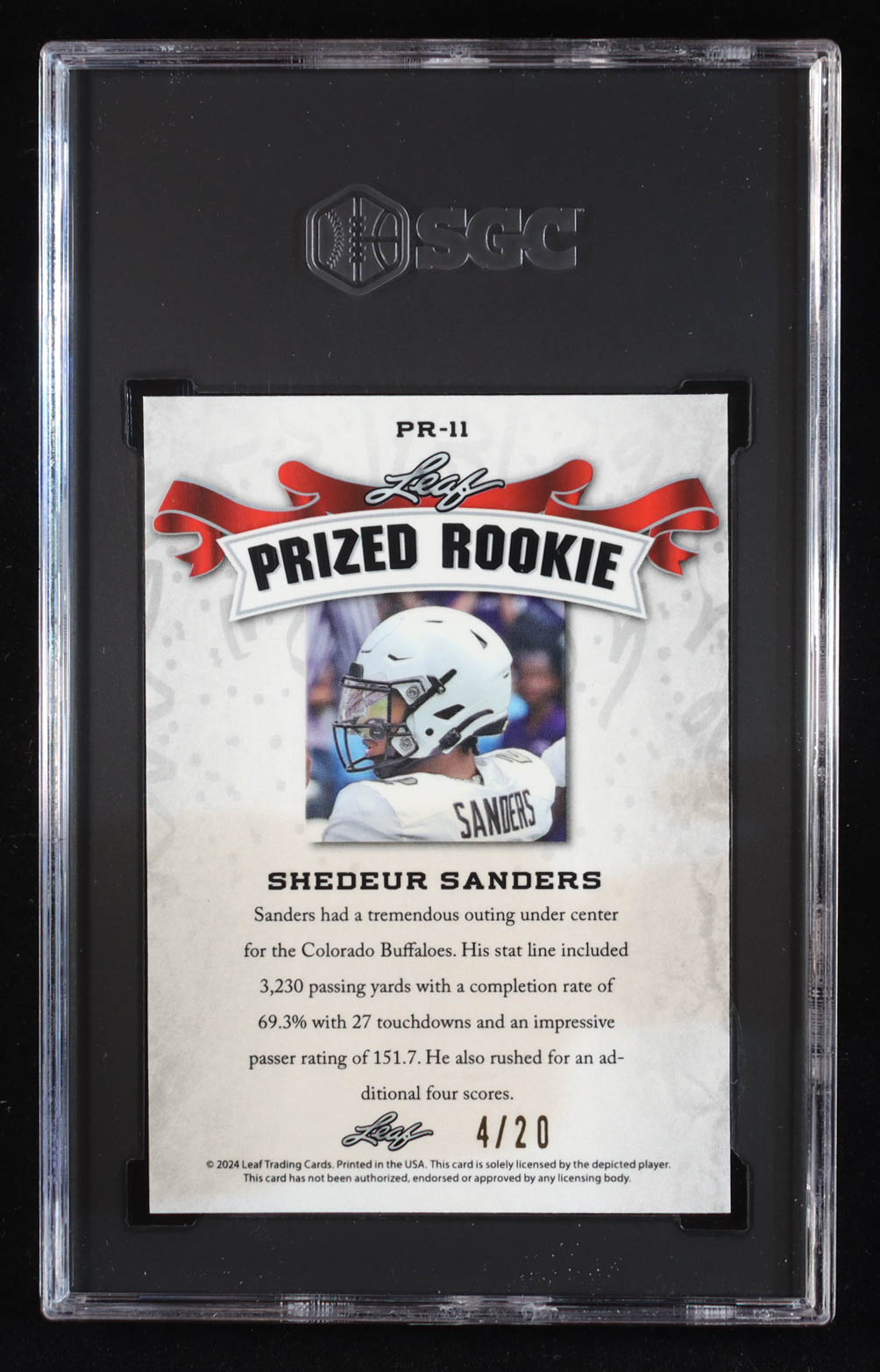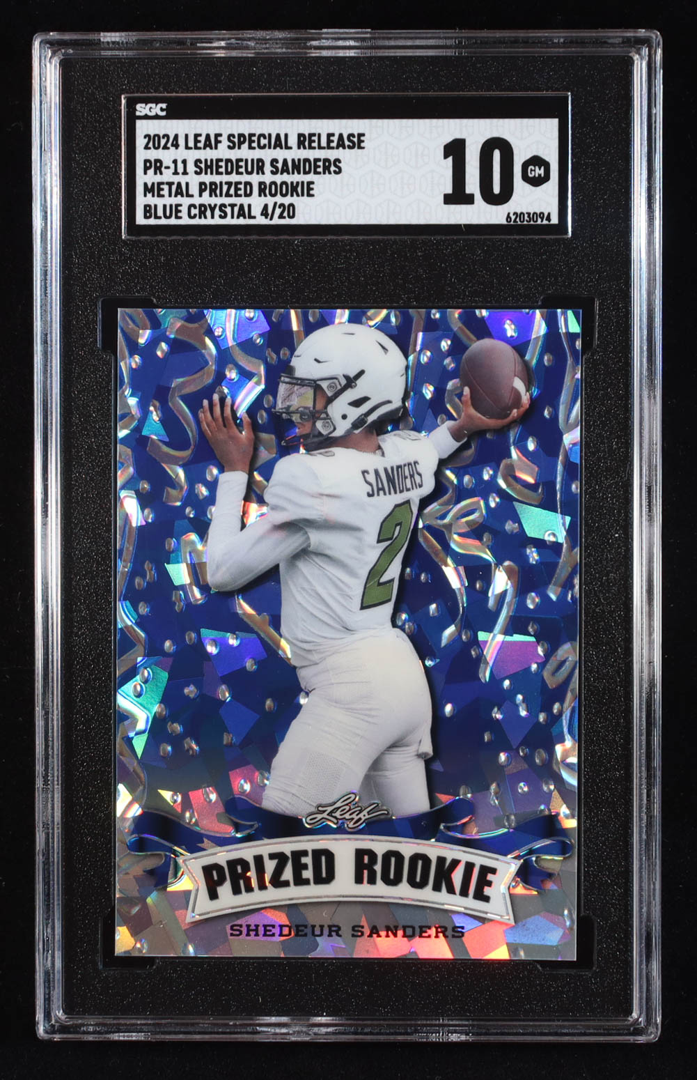 Shedeur Sanders 2024 Leaf Metal Special Release Prized Rookie Crystal Blue #PR11 RC #4/20 (SGC 10)