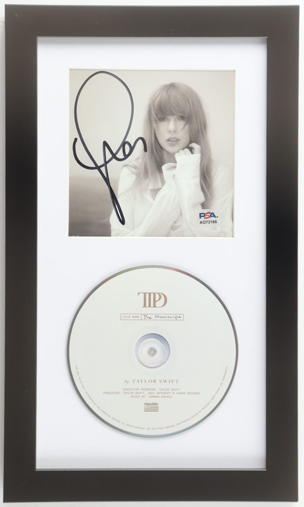 Custom frame measures approximately 8" x 13.5" in size. Features a "The Torture Poets Department" CD insert that has been hand-signed by Taylor Swift and includes the disc as shown.