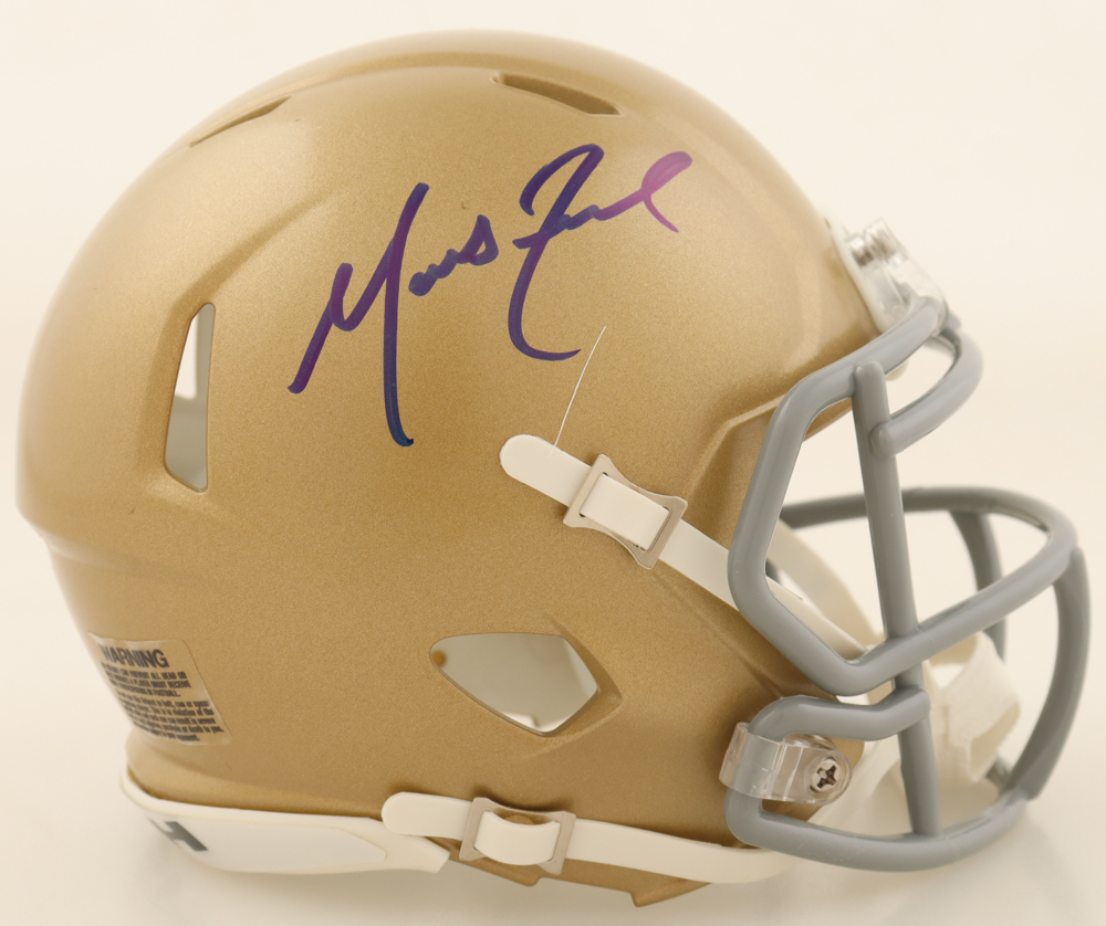 Riddell Notre Dame Fighting Irish speed mini helmet has been hand-signed by Marcus Freeman.