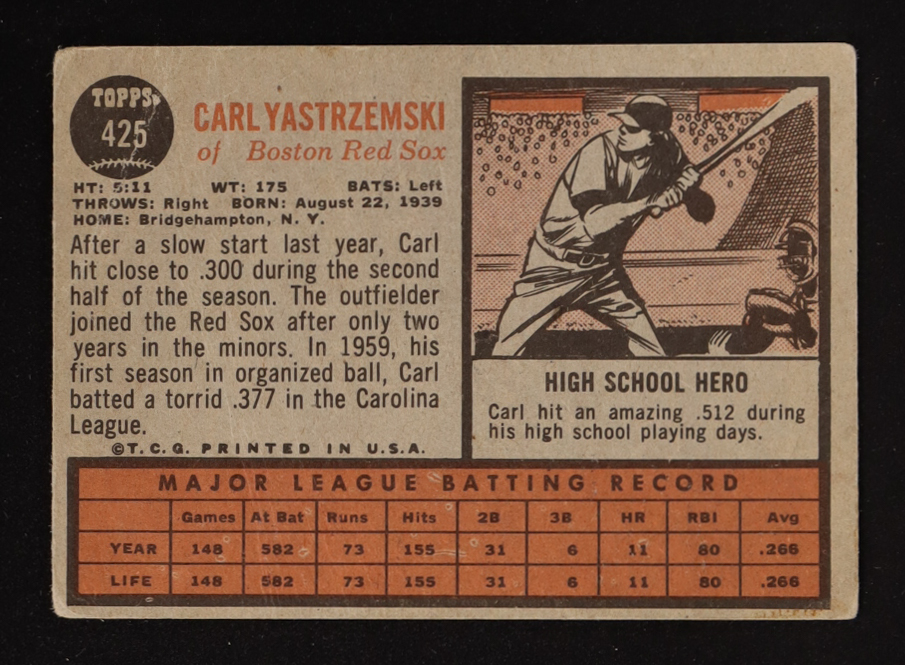 Carl Yastrzemski 1962 Topps #425