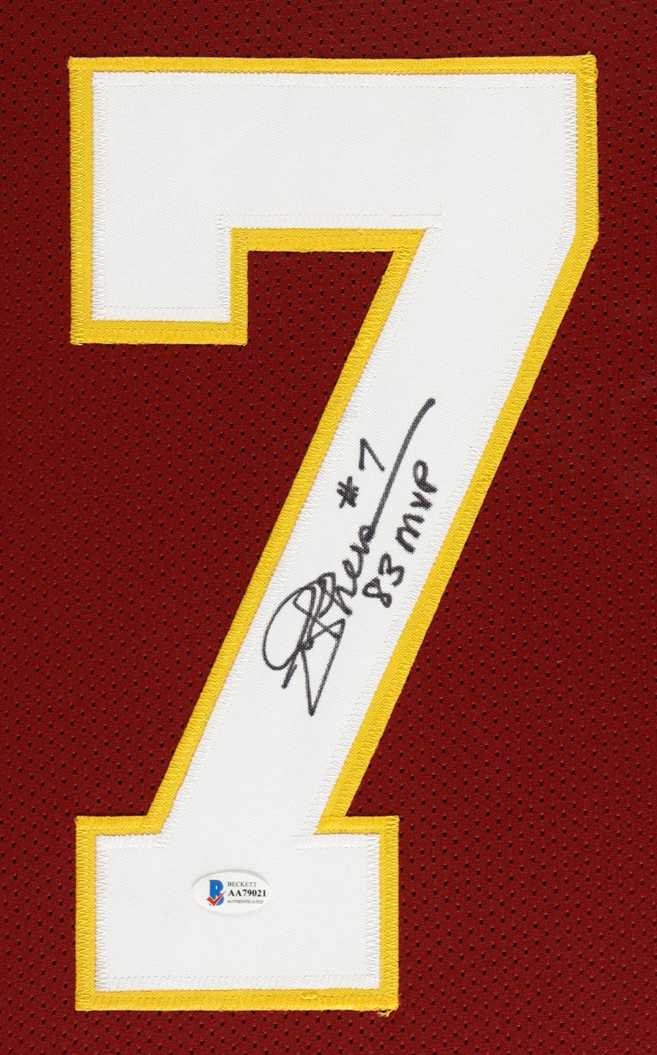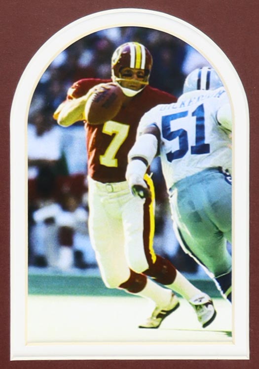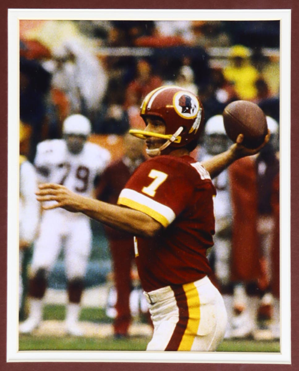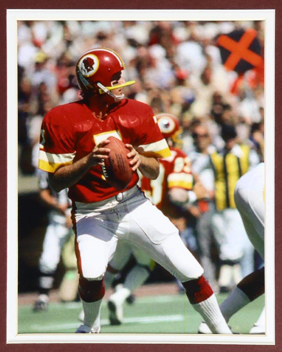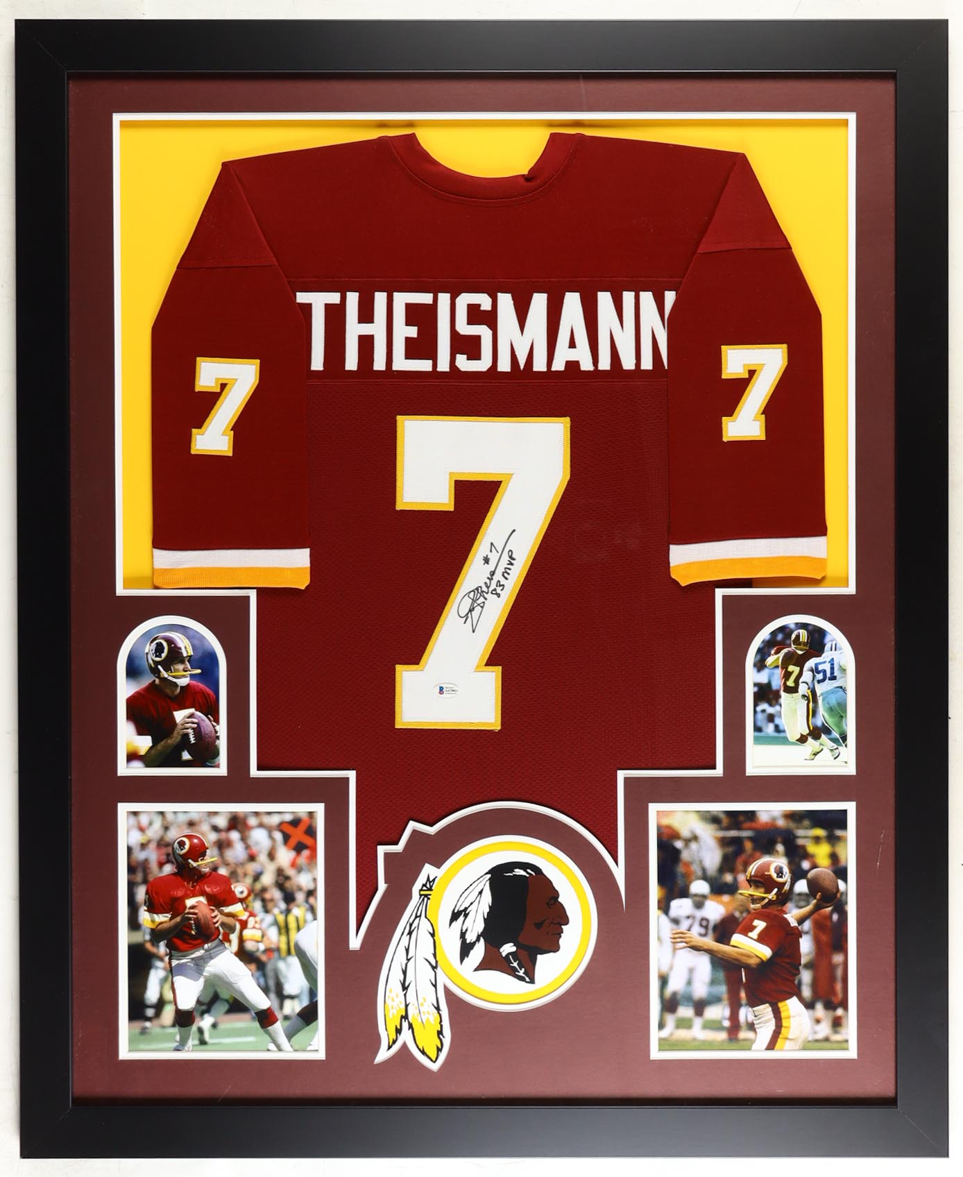 Custom frame measures 35.5" x 43.5" in size and features a jersey that has been hand-signed and inscribed by Joe Theismann.