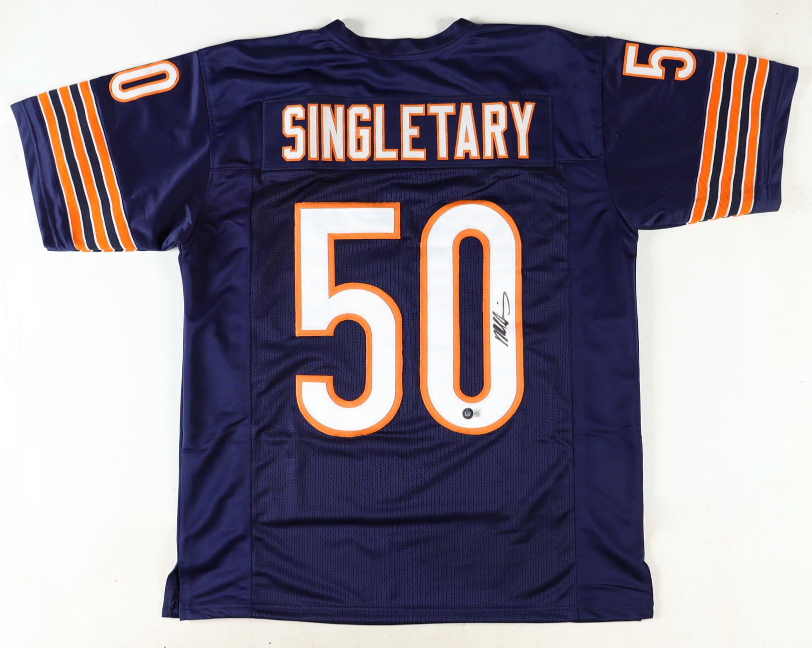 Custom jersey with everything sewn on, size XL. Hand-signed by Mike Singletary (HOF).