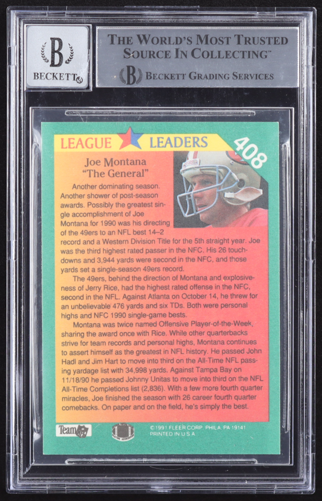 Joe Montana Signed 1991 Fleer #408 LL (BGS | Auto 10)