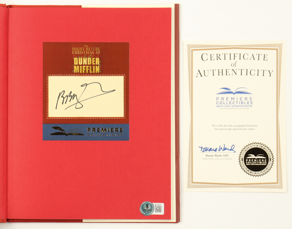 "The Night Before Christmas At Dunder Mifflin" hardcover book has been hand-signed on the inside cover page by Brian Baumgartner.