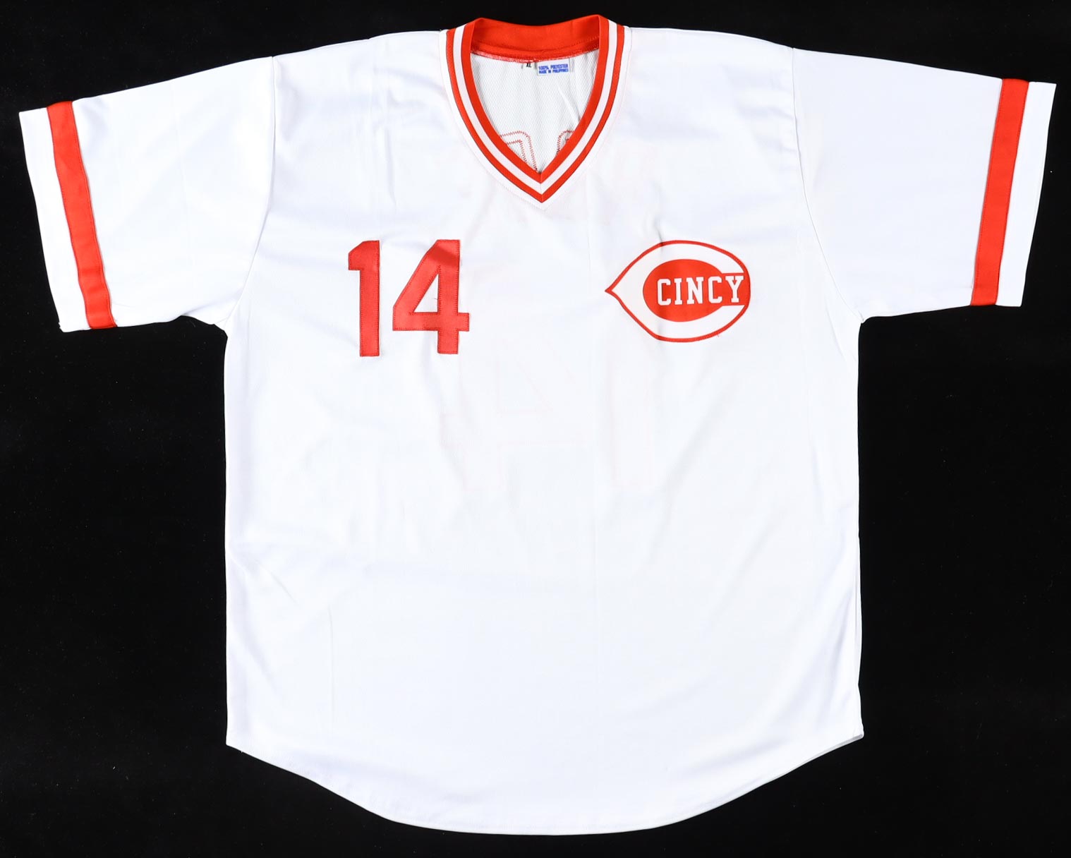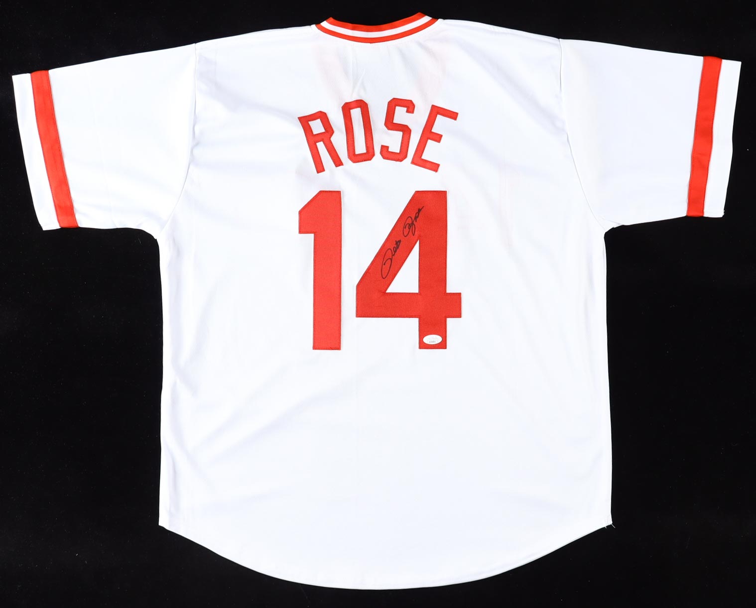 Custom jersey with everything sewn on, size XL. Hand-signed by Pete Rose (D. 2024).
