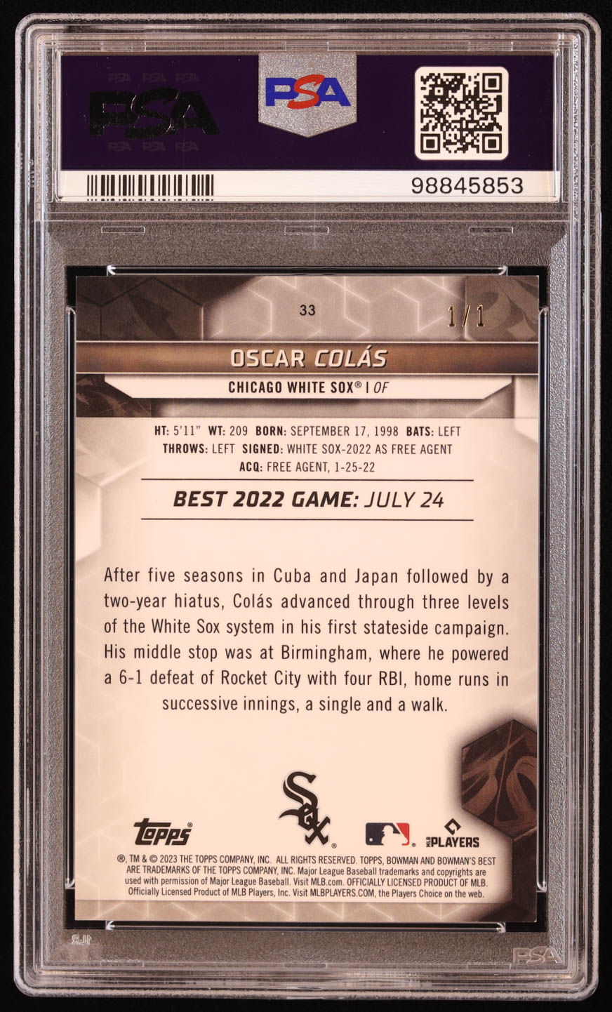 Oscar Colas 2023 Bowman's Best Superfractors #33 RC #1/1 (PSA 9)