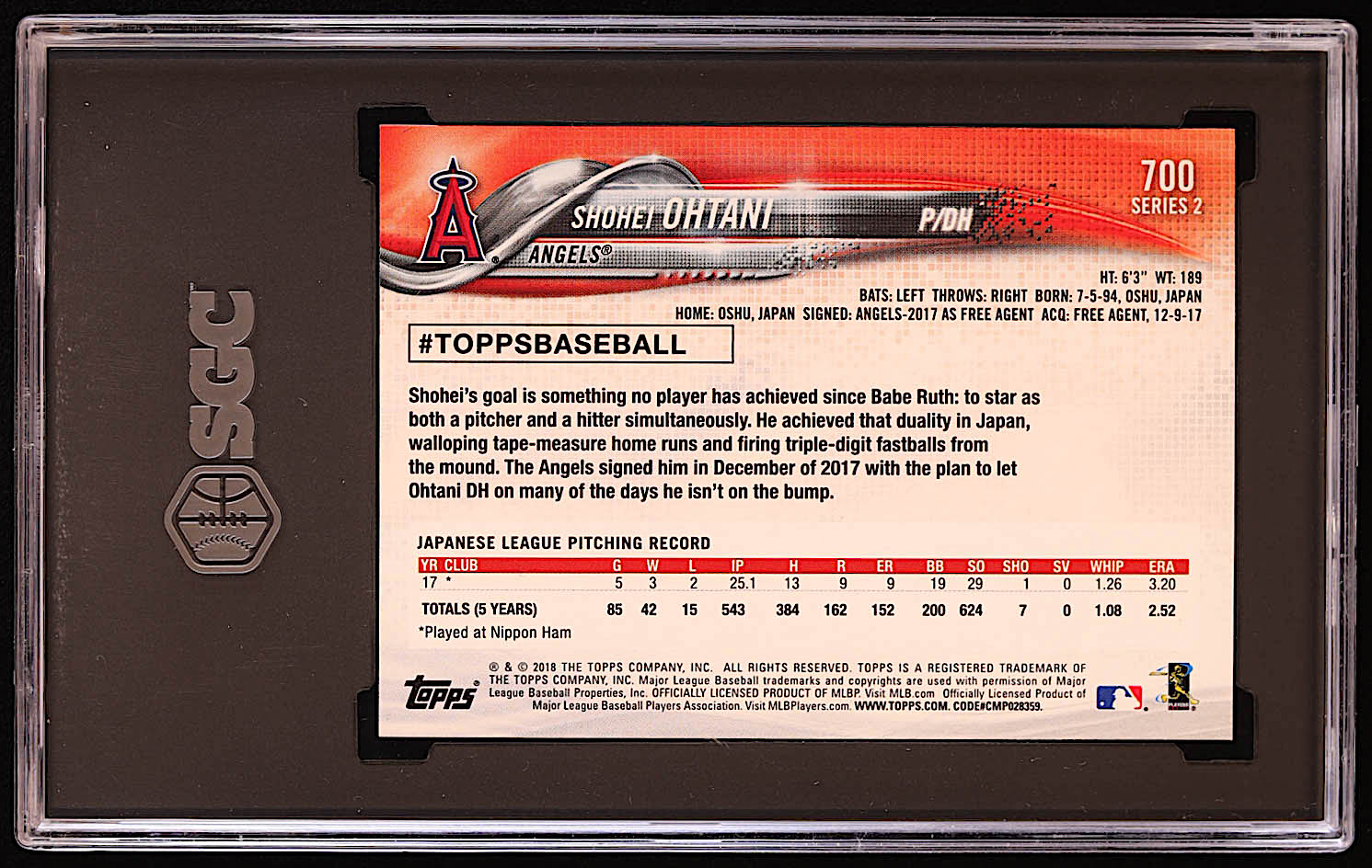 Shohei Ohtani 2018 Topps #700 RC (SGC 9.5)