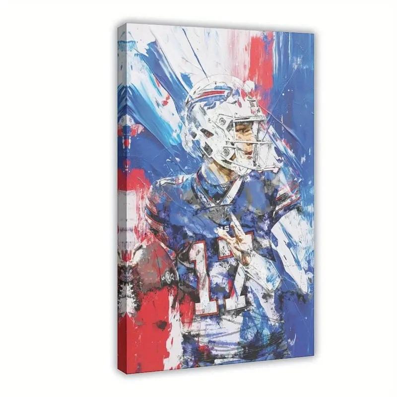 Image printed on canvas measures 16" x 24" in size and features Josh Allen (Buffalo Bills). Please note, this item is unsigned. Image is printed on quality canvas and finished with protective coating to prevent exterior damage.
