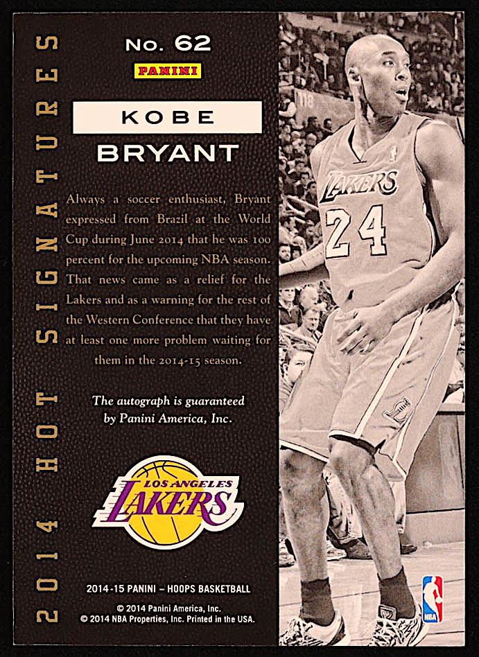 Kobe Bryant 2014-15 Hoops Hot Signatures #62