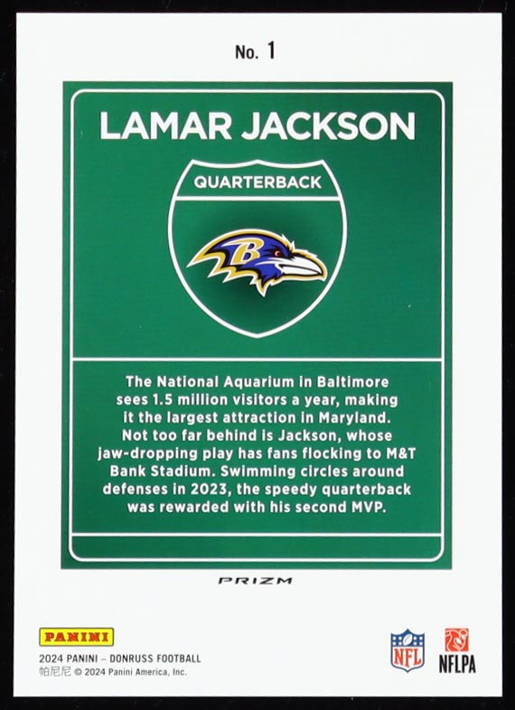 Lamar Jackson 2024 Donruss Downtown! Oversize #1