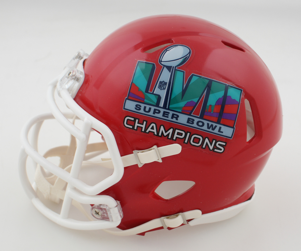 Riddell Kansas City Chiefs LVII Super Bowl Champions Logo Speed mini helmet. Hand-signed by Andy Reid.