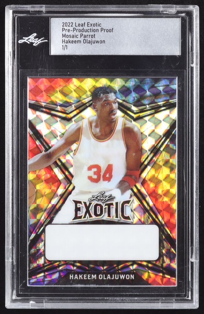 Hakeem Olajuwon 2022 Leaf Exotic Mosaic Parrot Pre-Production Proof #1/1 (Leaf)