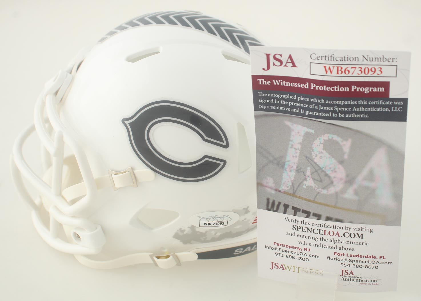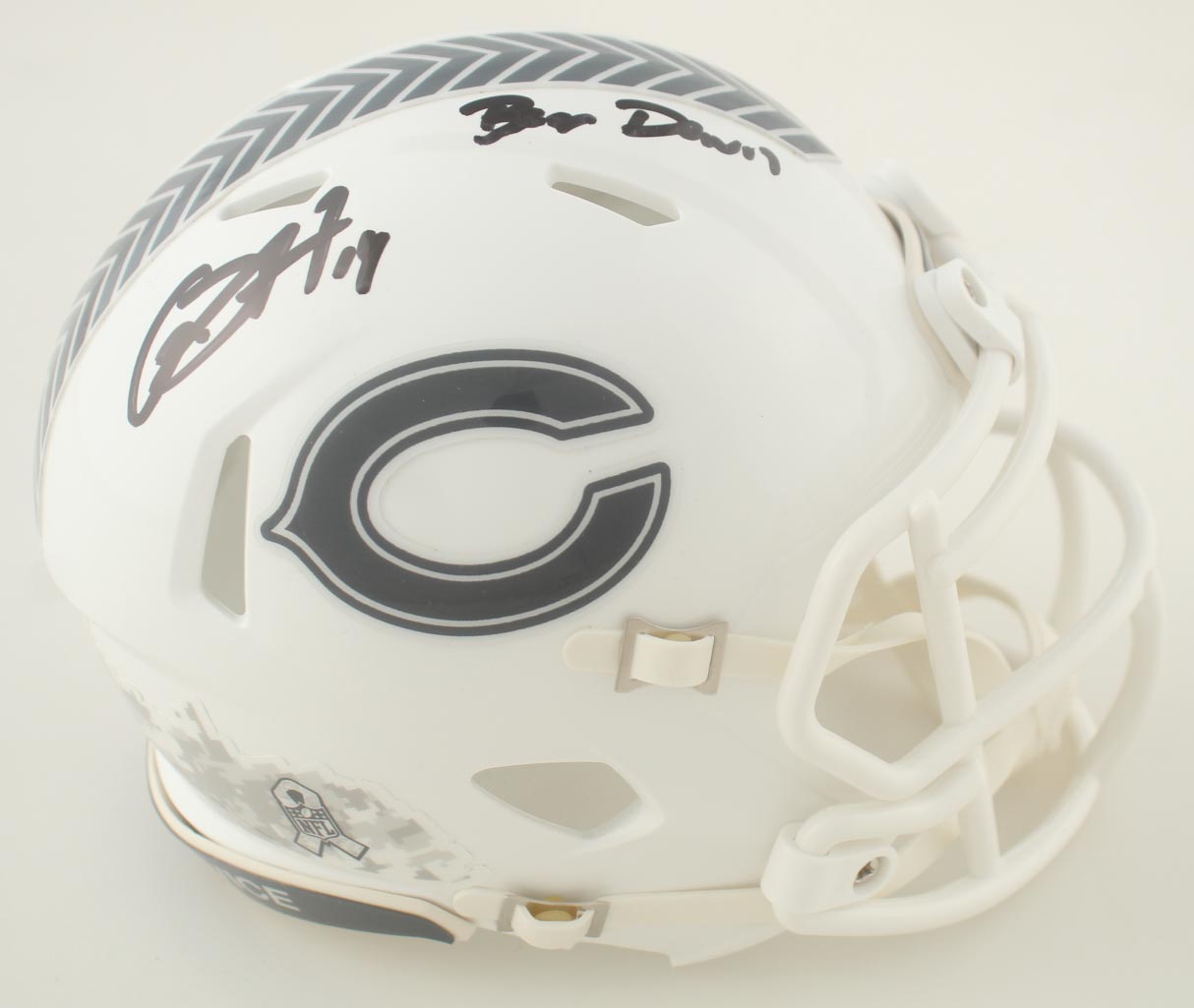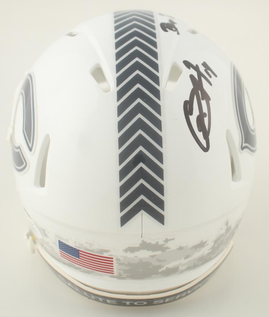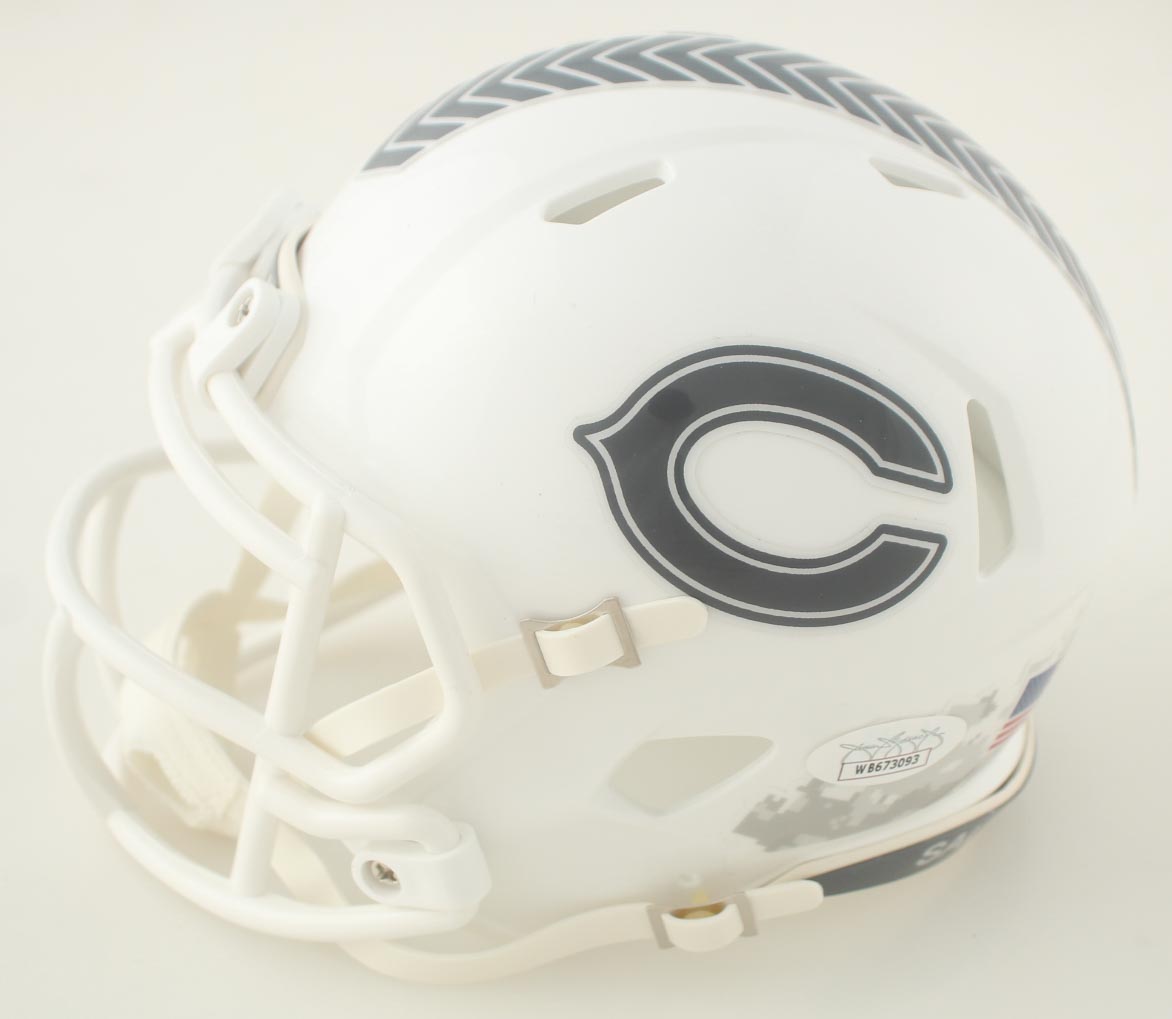 Riddell Chicago Bears Salute To Service Alternate Speed mini helmet. Hand-signed and inscribed by Gerald Everett.