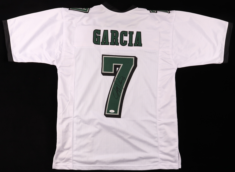 Custom style jersey with everything sewn on, size XL. Hand-signed by Jeff Garcia.