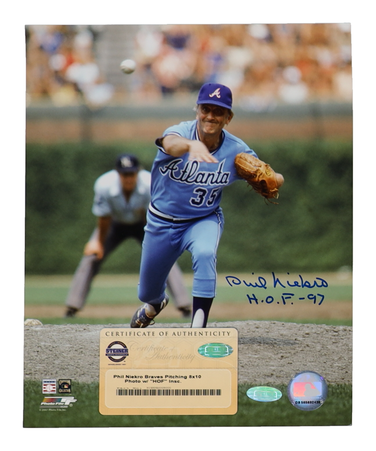 Phil Niekro Signed Braves 8x10 Photo Inscribed "HOF 97" (Steiner)
