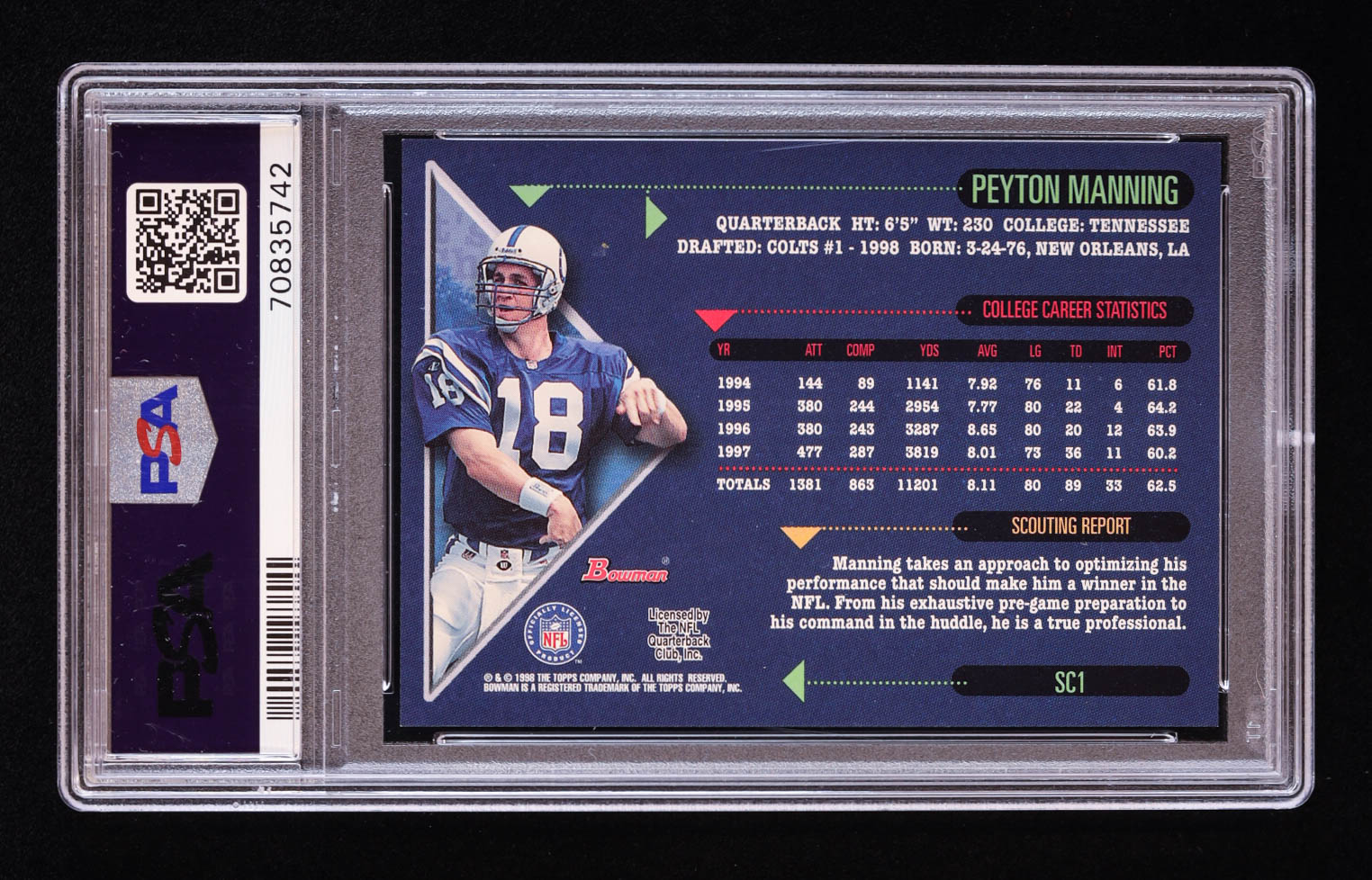 Peyton Manning 1998 Bowman Scout's Choice #SC1 RC (PSA 9)