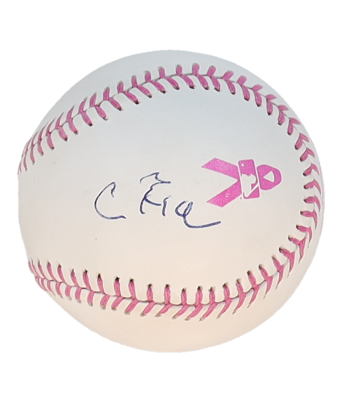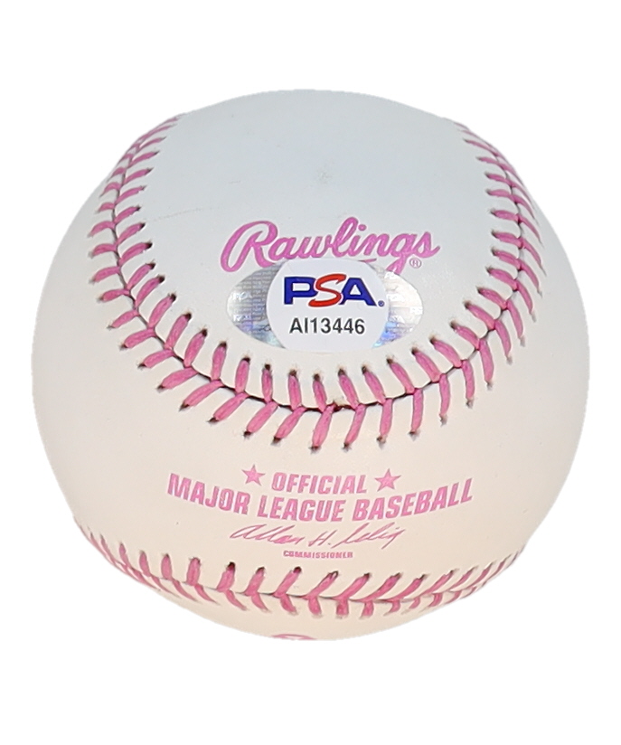 Rawlings Official Major League Breast Cancer Awareness Logo Baseball. Hand-signed by Condoleezza Rice. Please note, there are stains on the baseball.