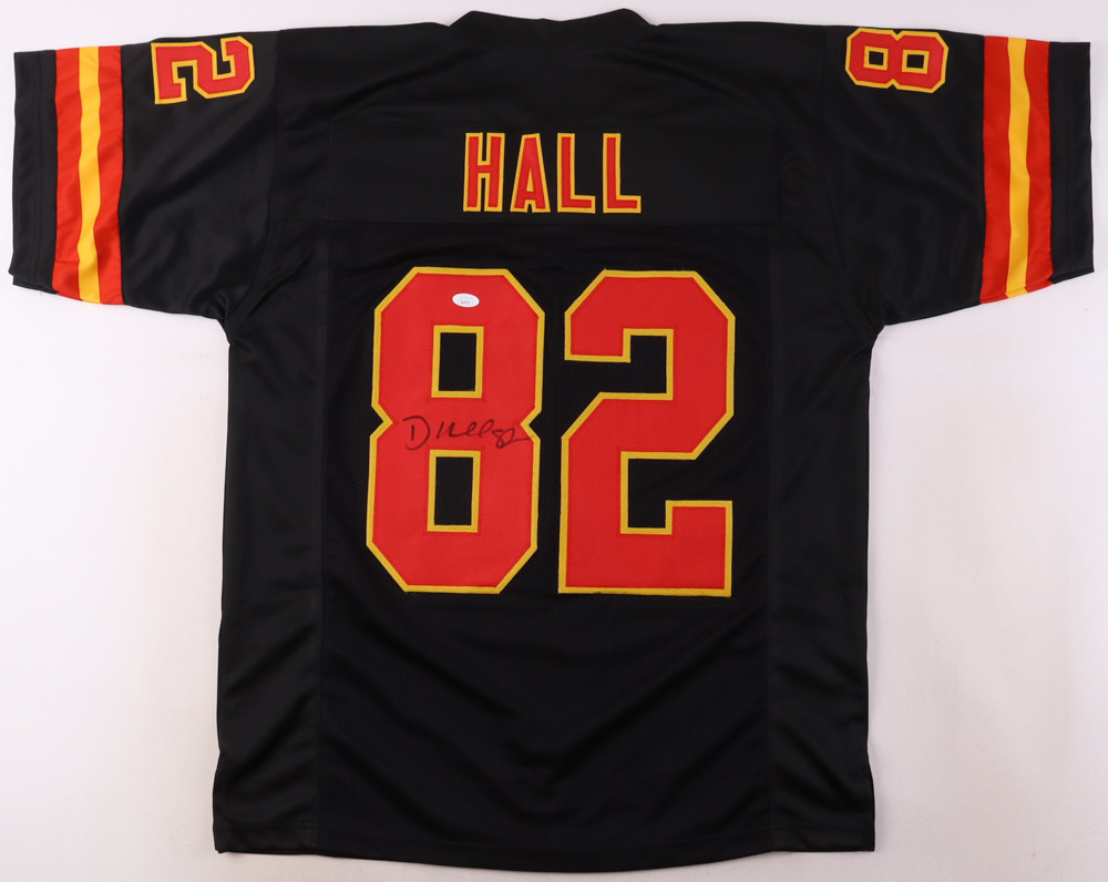 Custom jersey with everything sewn on, size XL. Hand-signed by Dante Hall.