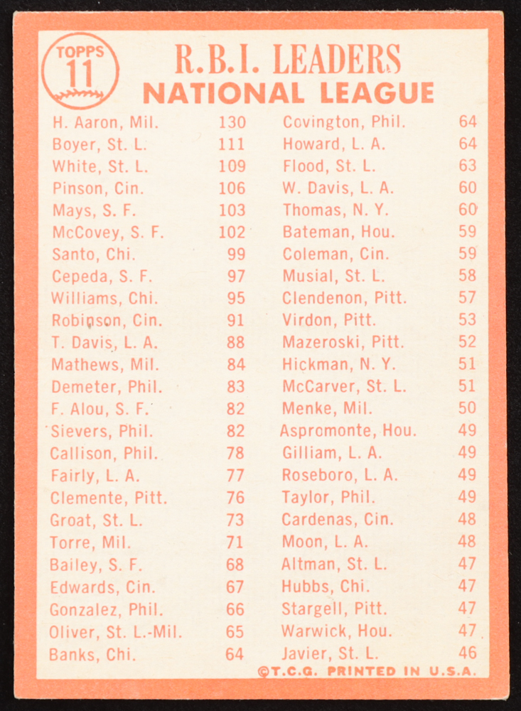 Hank Aaron / Ken Boyer / Bill White 1964 Topps #11 NL RBI Leaders