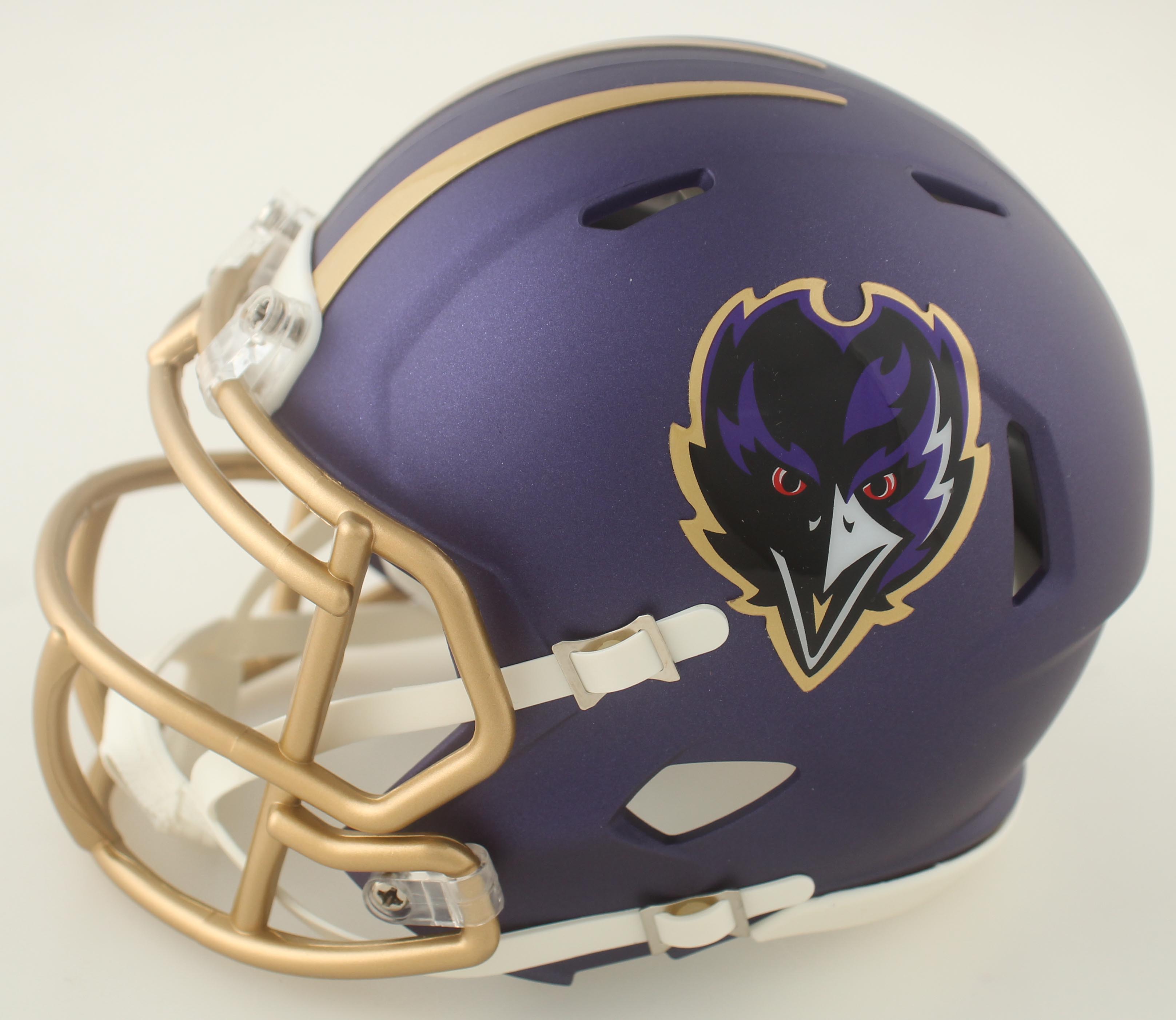 Riddell Baltimore Ravens Alternate Speed mini helmet. Hand-signed by Zay Flowers.