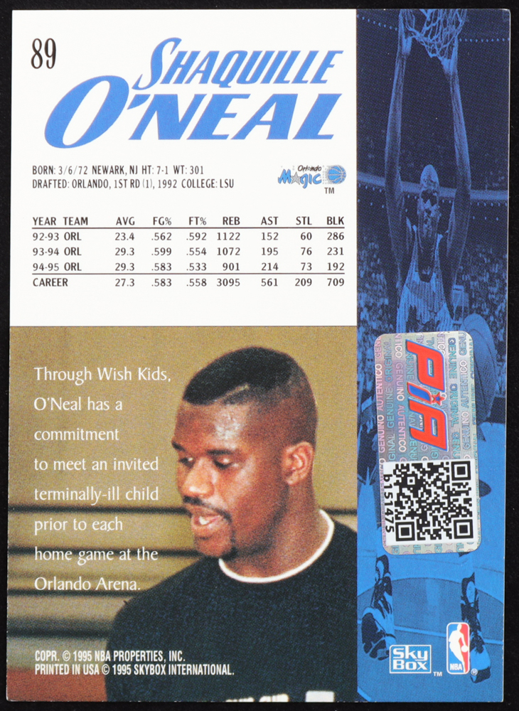 Shaquille O'Neal Signed 1995-96 SkyBox Premium #89 (PIA)