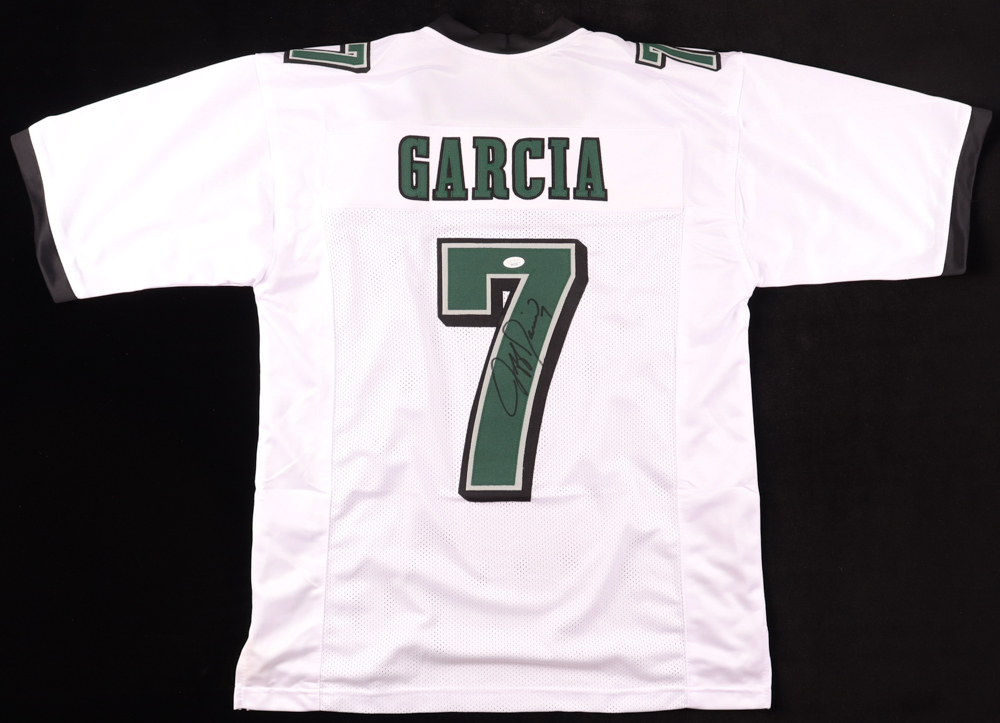 Custom style jersey with everything sewn on, size XL. Hand-signed by Jeff Garcia.