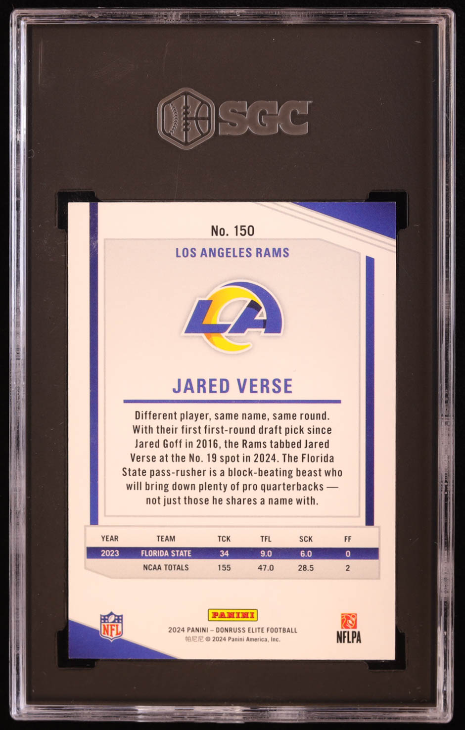 Card has been graded (SGC) 10. Please see photos for more details regarding the condition of the card (Los Angeles Rams).