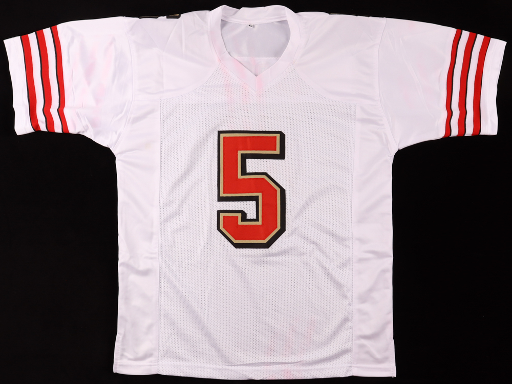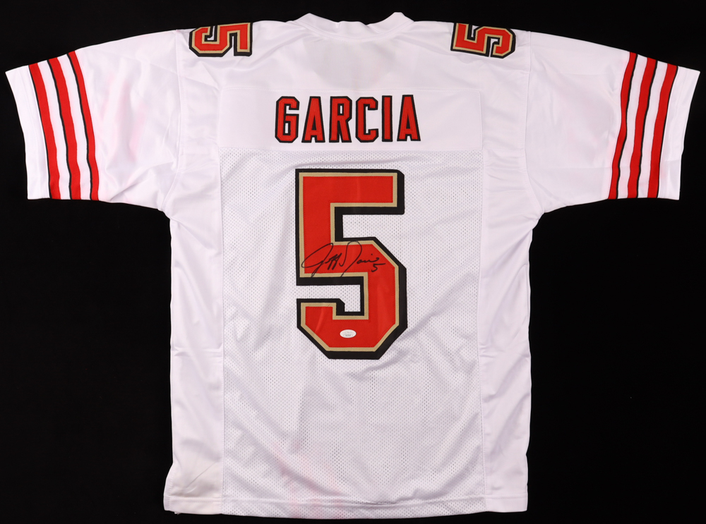 Custom style jersey with everything sewn on, size XL. Hand-signed by Jeff Garcia.