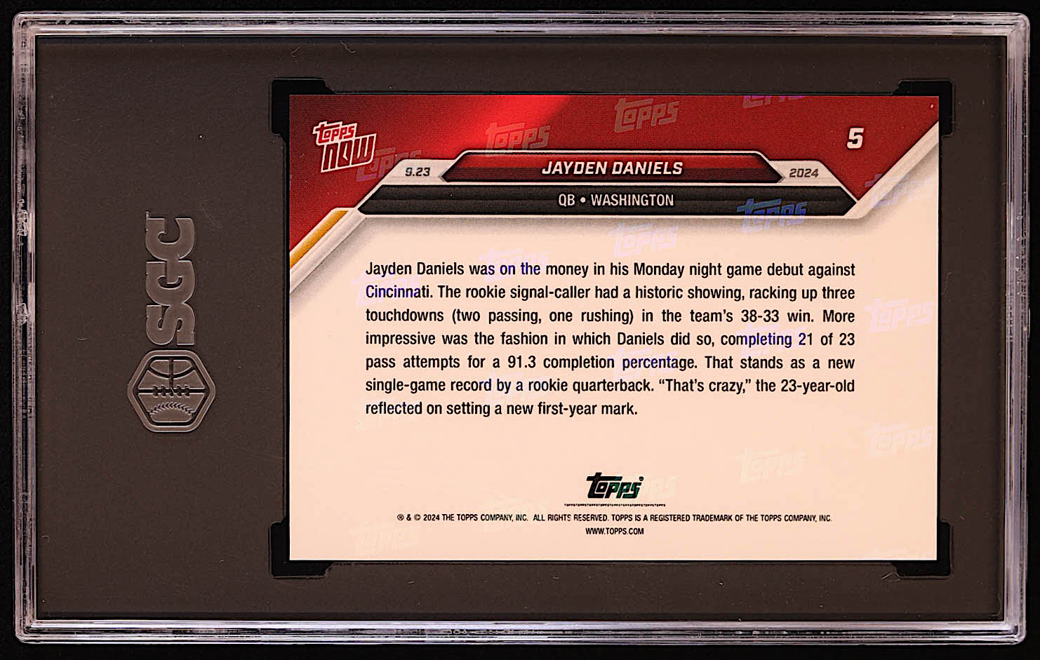 Jayden Daniels 2024 Topps Now #5 RC (SGC 10)