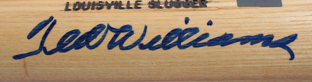 Louisville Slugger Hillerich & Bradsby Player Model Baseball Bat has been hand-signed by Ted Williams (D. 2002, Boston Red Sox, HOF).