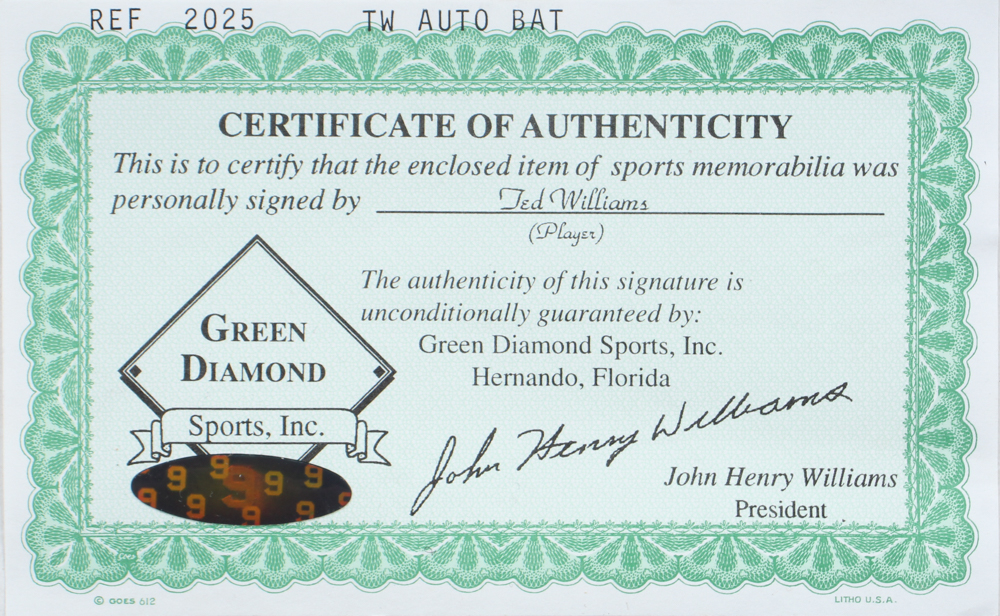 The lot / autograph(s) includes an official Ted Williams player hologram for authenticity purposes.