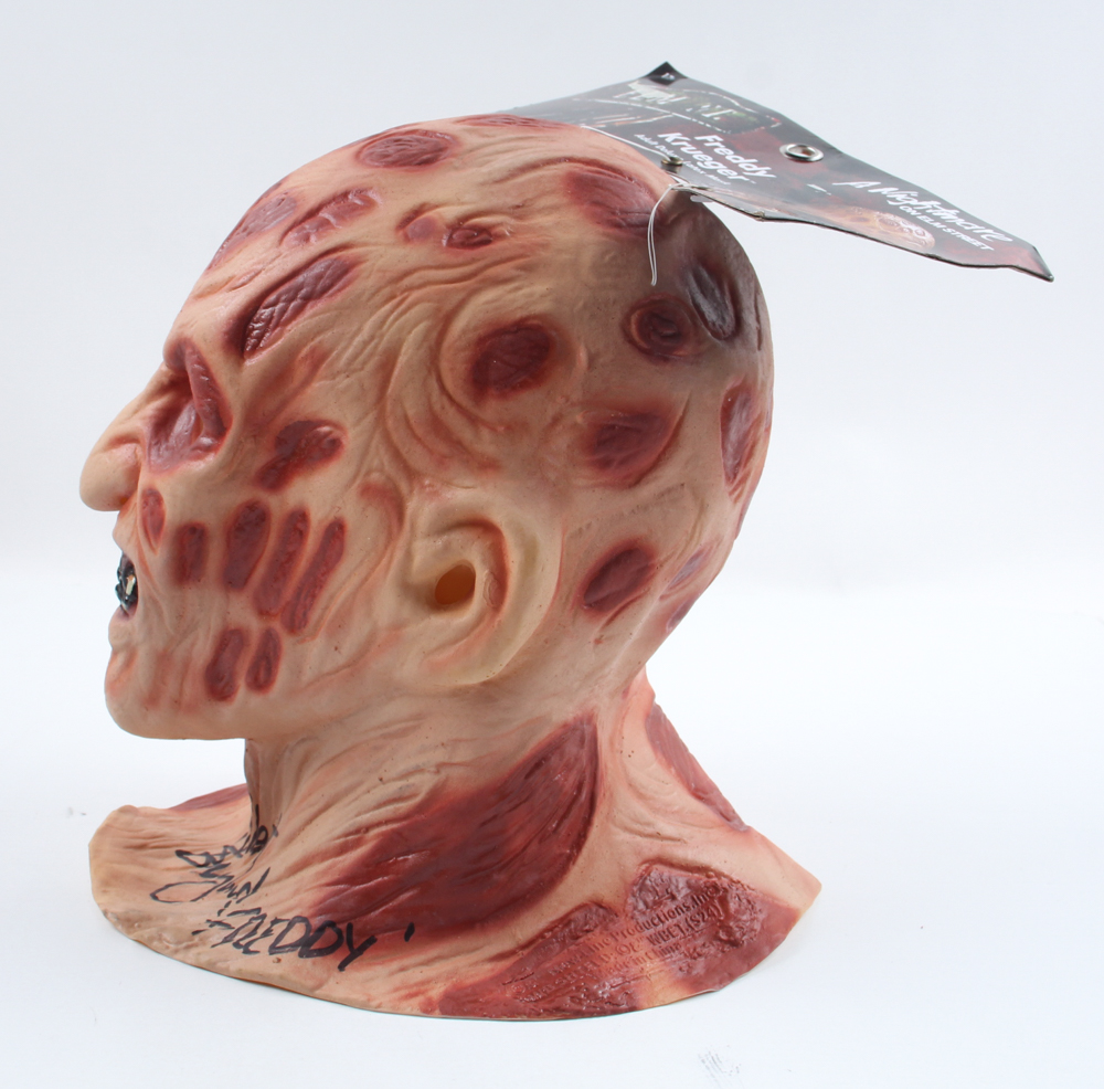 "A Nightmare on Elm Street" replica mask has been hand-signed and inscribed by Robert Englund.