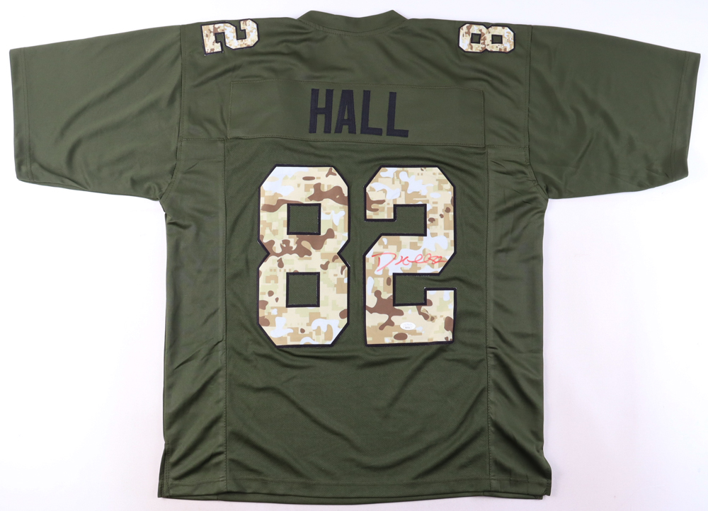 Custom jersey with everything sewn on, size XL. Hand-signed by Dante Hall.
