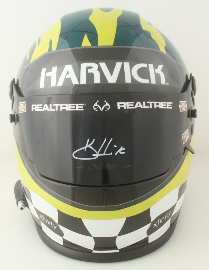Full-size replica NASCAR helmet is hand-signed on the visor by Kevin Harvick. Please note, there is scuffing on the visor.