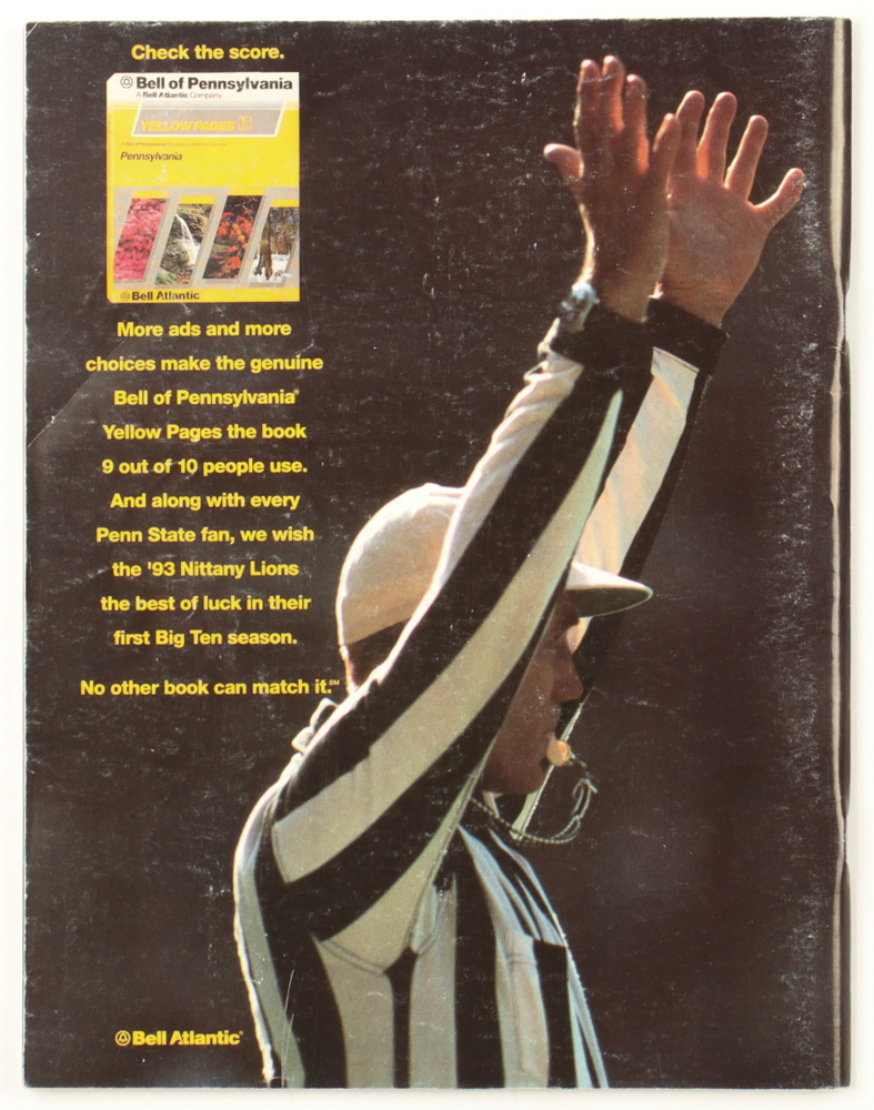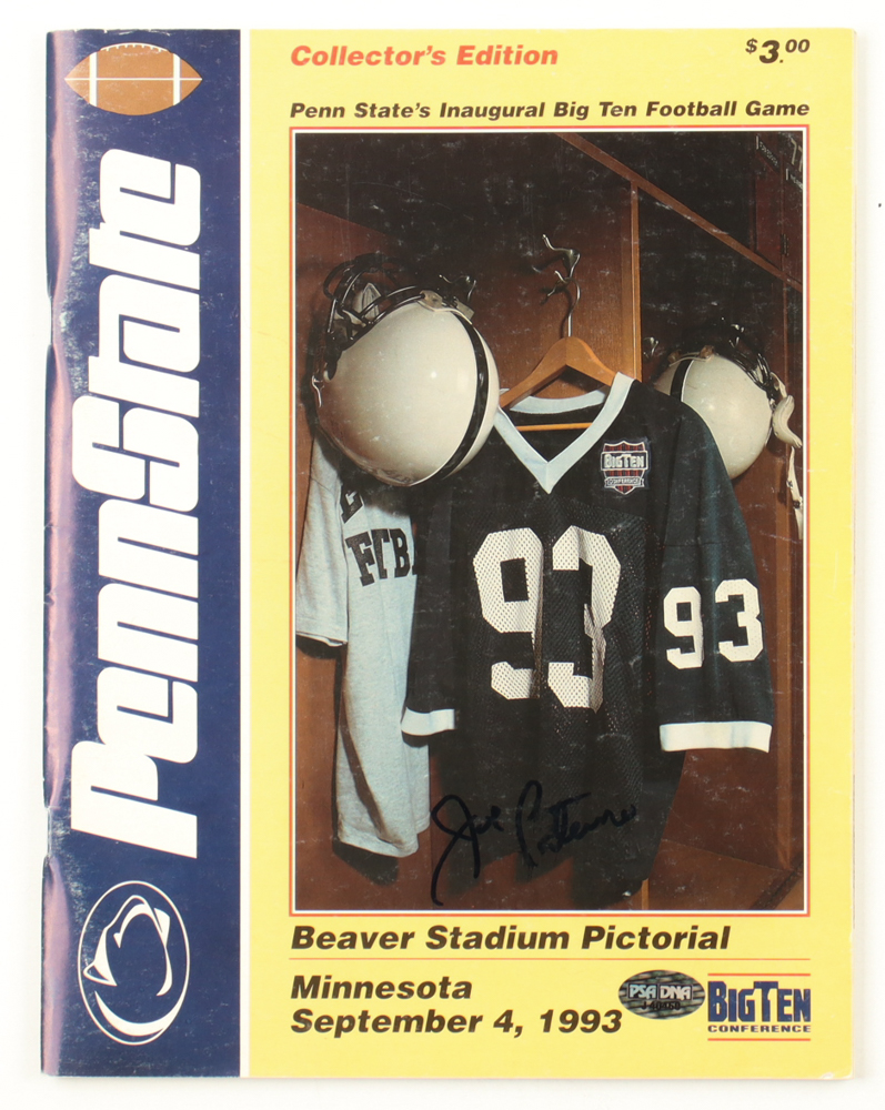 Penn State Beaver Stadium Pictorial Magazine is dated September 4, 1993. Has been hand-signed by Joe Paterno (Coach, D.2012). Please note the covers are scuffed as well as there is a crease on the back of the magazine.