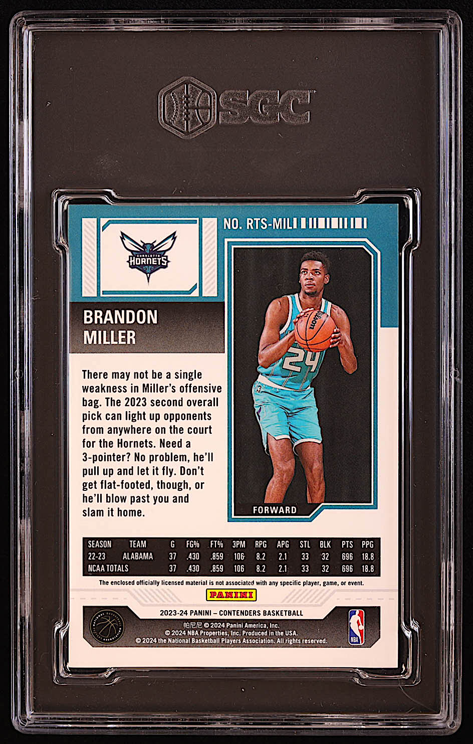 Brandon Miller 2023-24 Panini Contenders Rookie Ticket Swatches #4 RC (SGC 9.5)