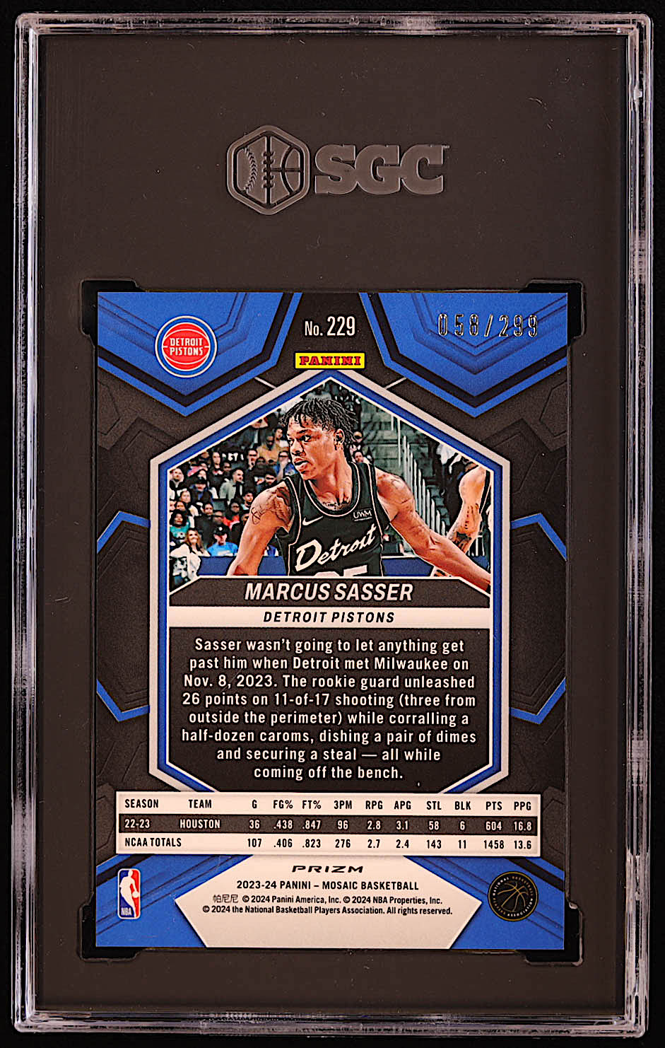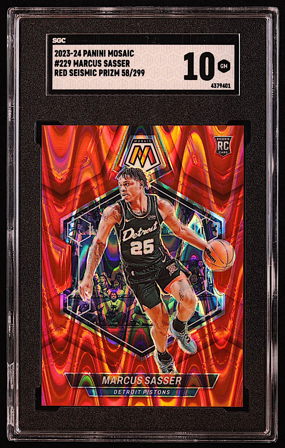 Marcus Sasser 2023-24 Panini Mosaic Red Seismic #229 #058/299 RC (SGC 10)