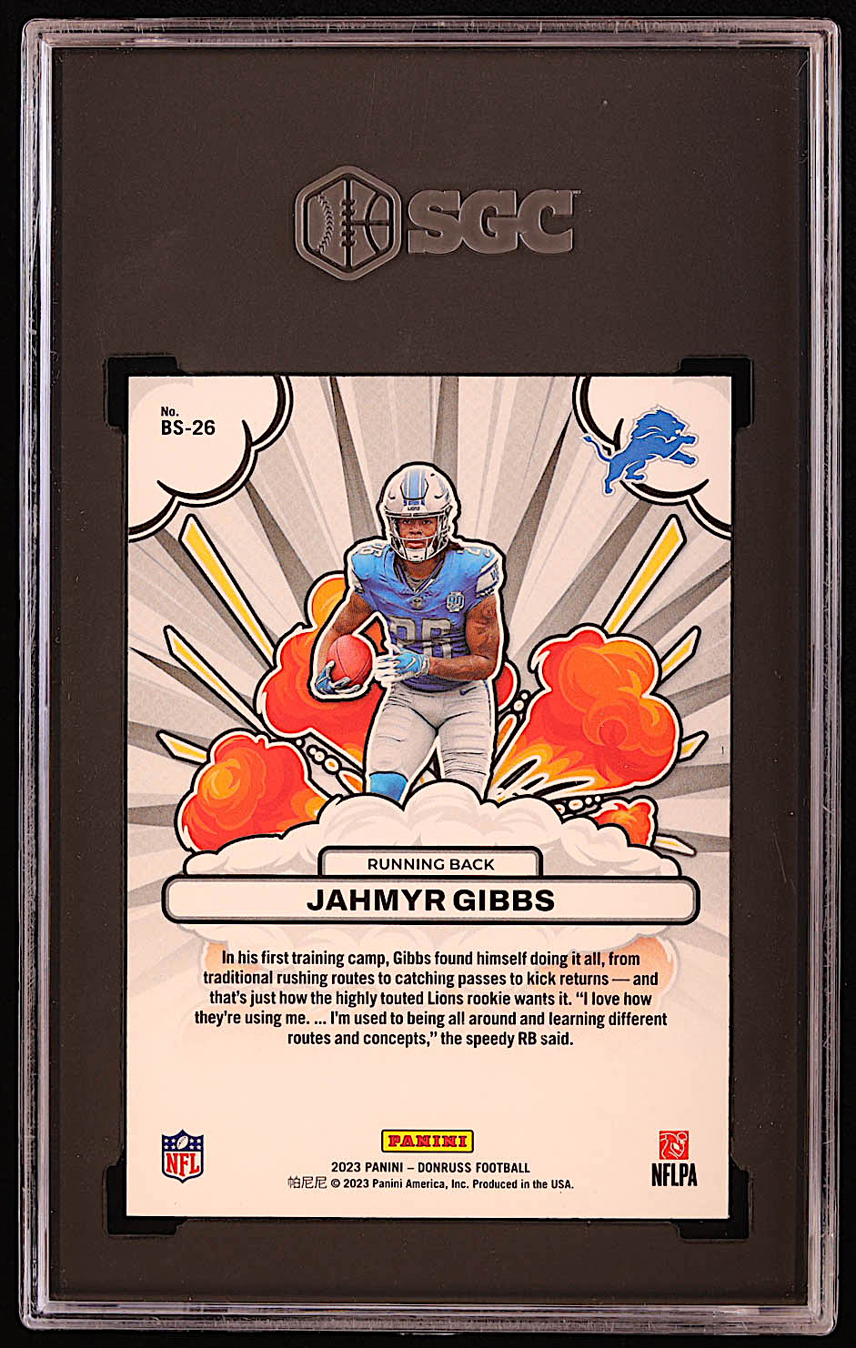 Jahmyr Gibbs 2023 Donruss Bomb Squad #26 RC (SGC 10)