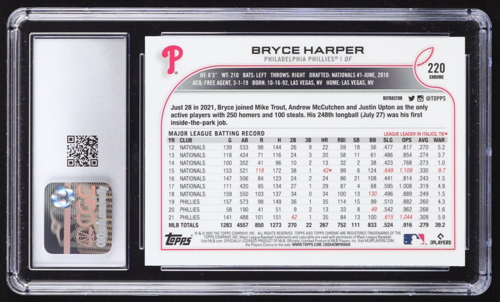 Bryce Harper 2022 Topps Chrome Refractors #220 (CGC 10)