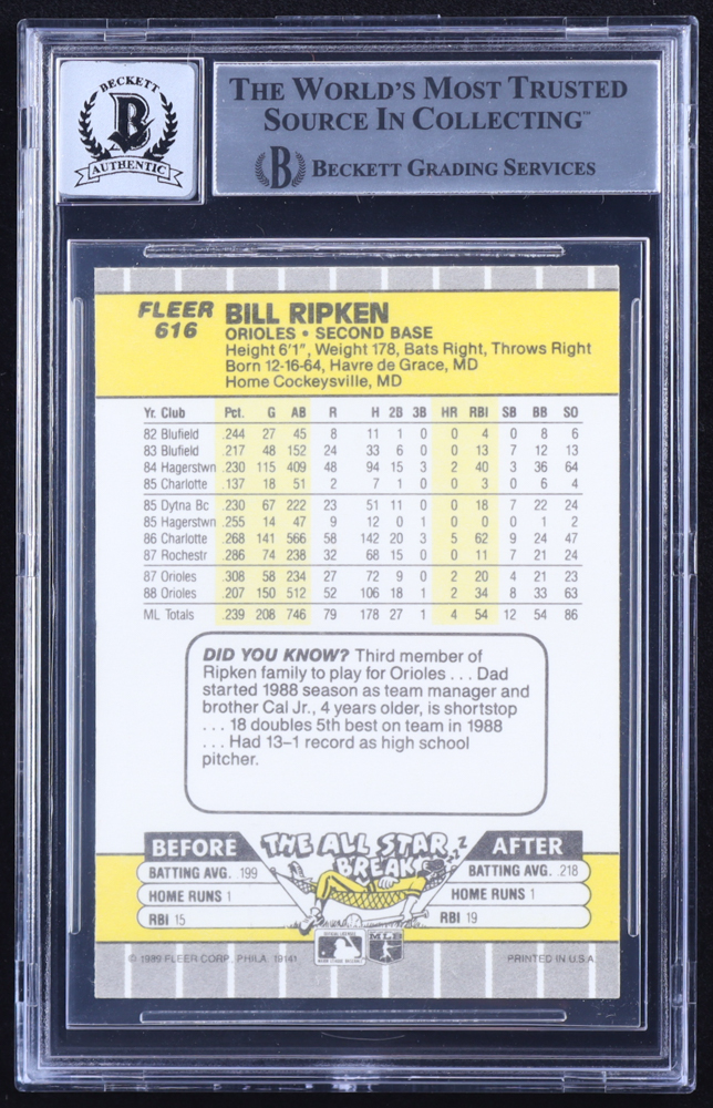 Billy Ripken Signed 1989 Fleer #616 / F@#! FACE Error (BGS | Auto 10)