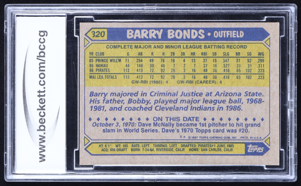 Barry Bonds 1987 Topps #320 RC (BCCG 10)