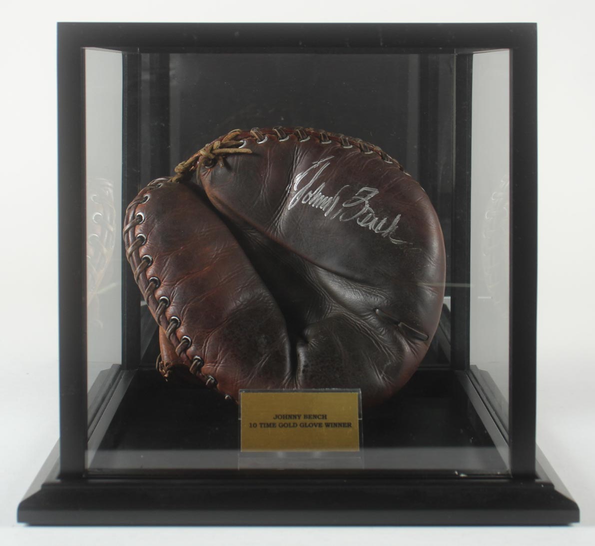 Johnny Bench Signed Vintage Catchers Glove With Display Case (Fanatics)