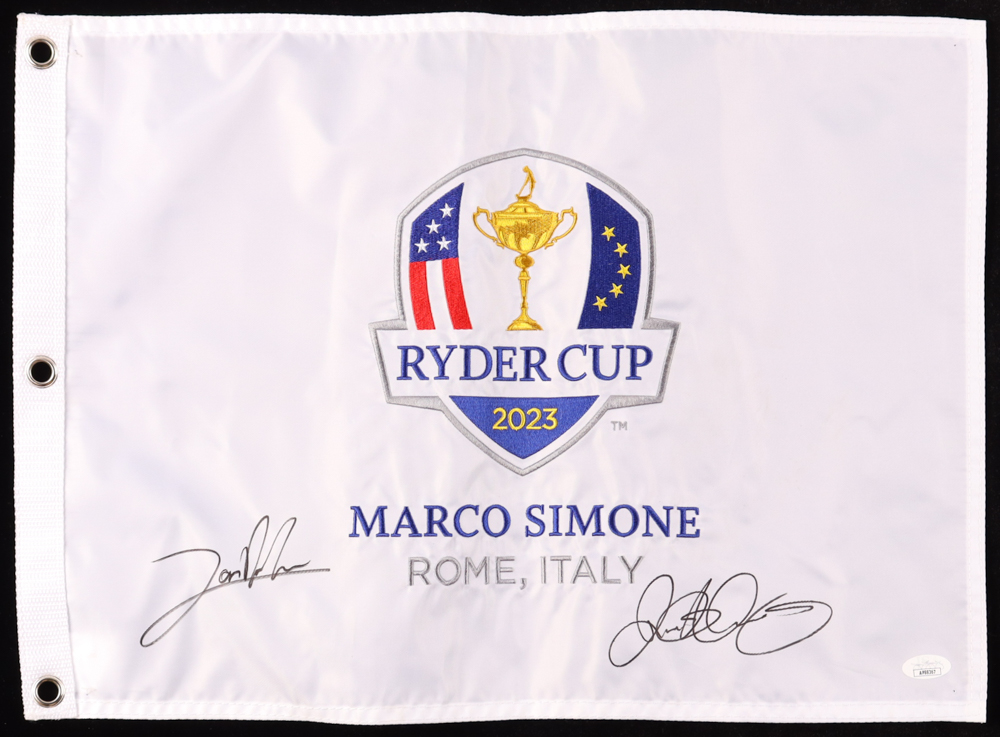 Jon Rahm & Rory McIlroy Signed 2023 Ryder Cup Golf Pin Flag (JSA)