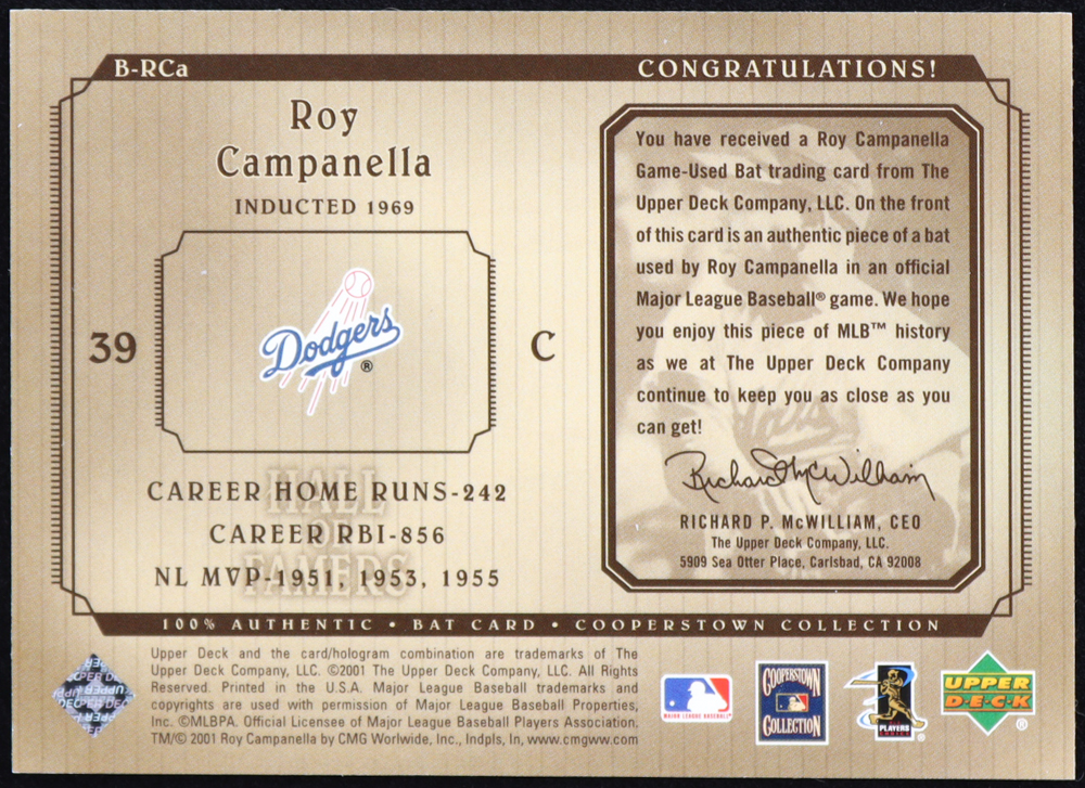 Roy Campanella 2001 Upper Deck Hall of Famers Game Bat #BRCA