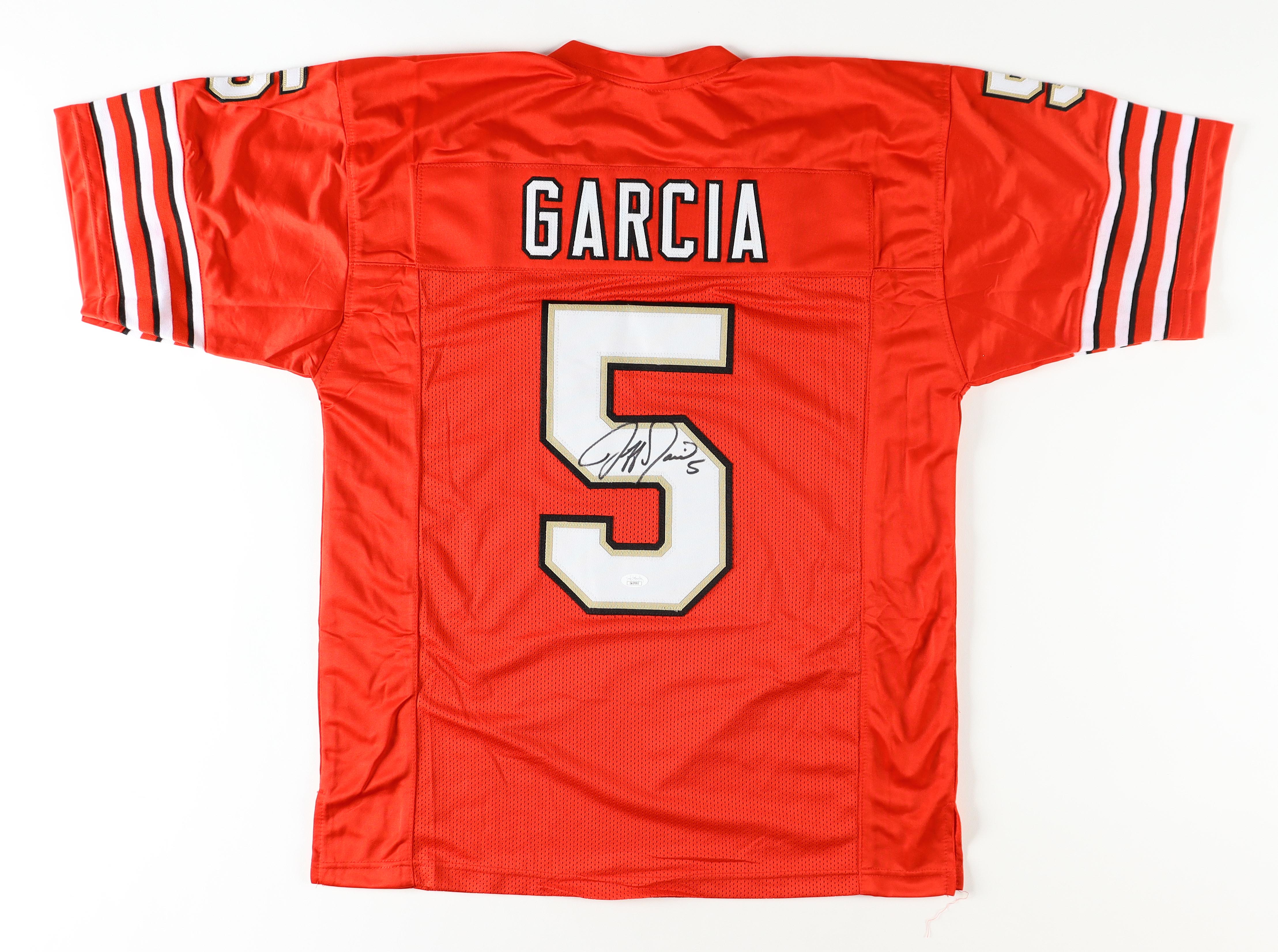 Custom jersey. Everything is sewn on, size XL. Hand-signed by Jeff Garcia.