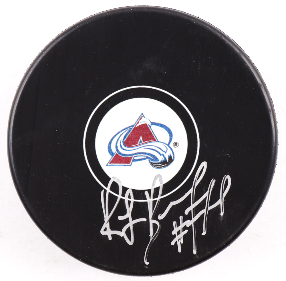 Colorado Avalanche Logo Hockey Puck has been hand signed by Ray Bourque (HOF).