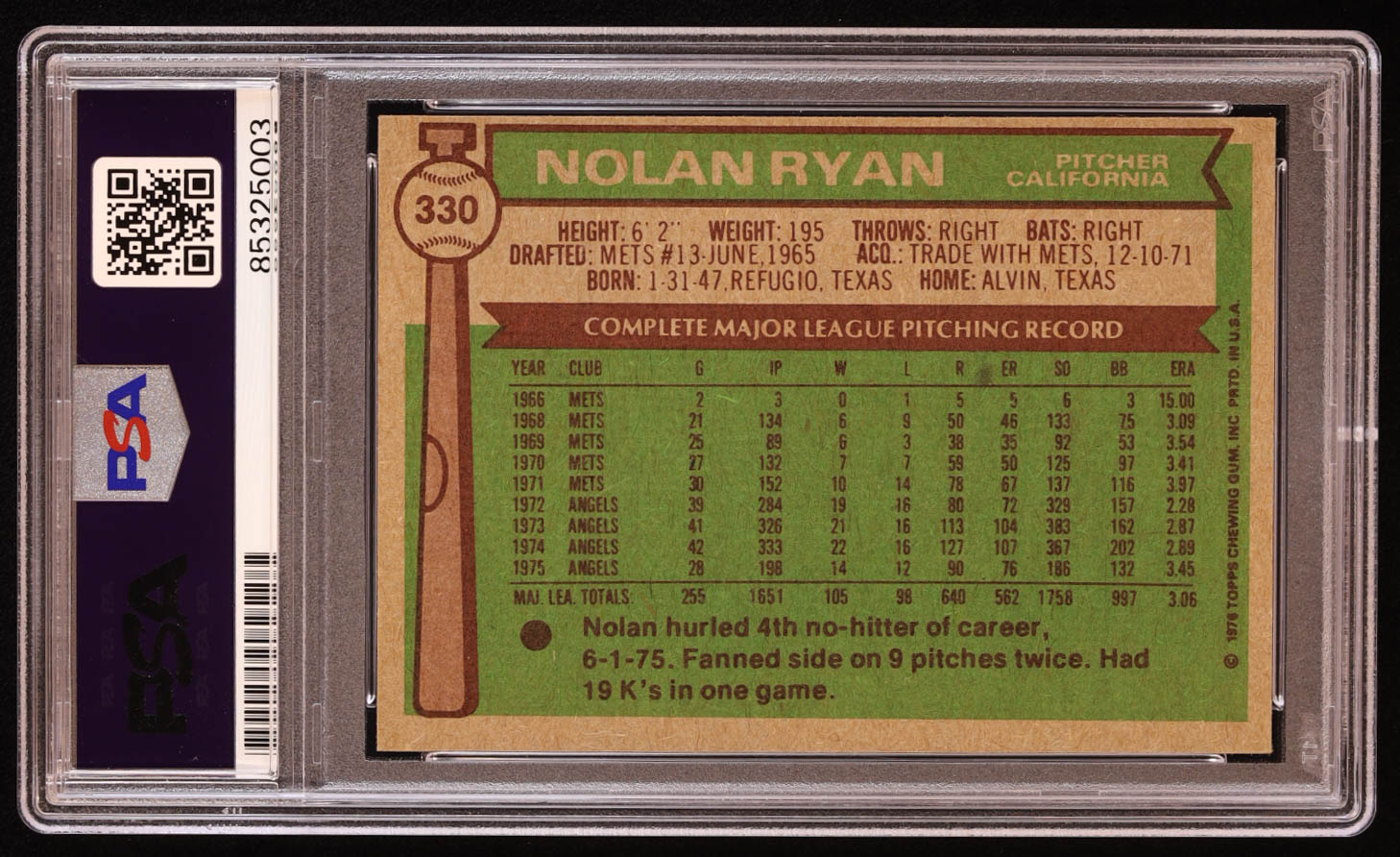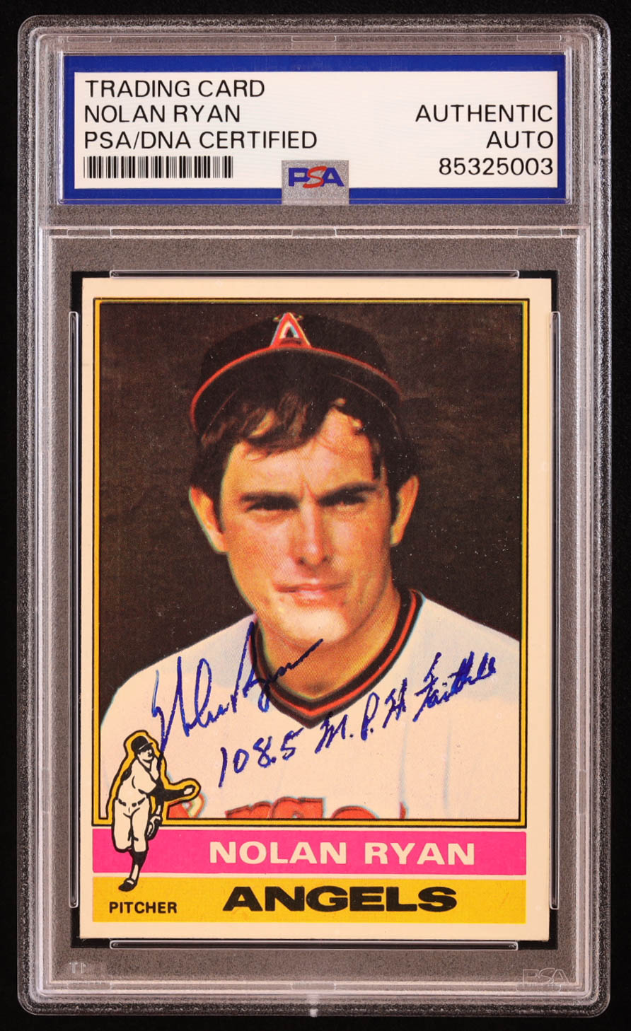 Nolan Ryan Signed 1976 Topps #330 Inscribed "108.5 MPH Fastball" (PSA)