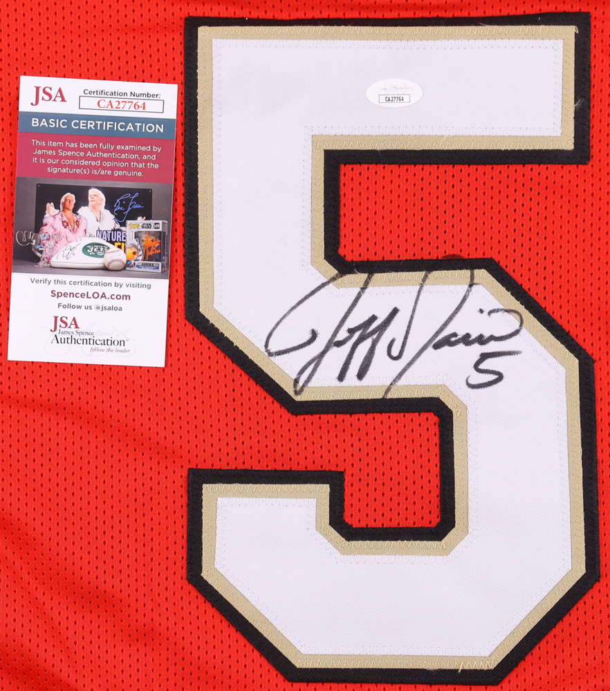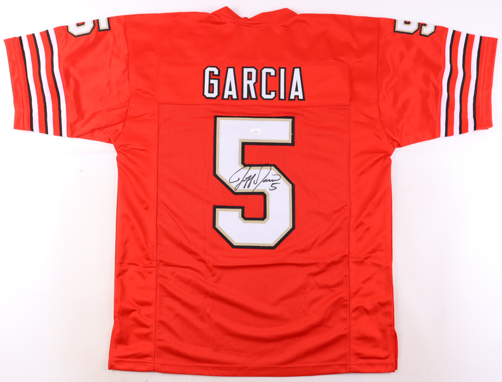 Custom jersey with everything sewn on, size XL. Hand-signed by Jeff Garcia.