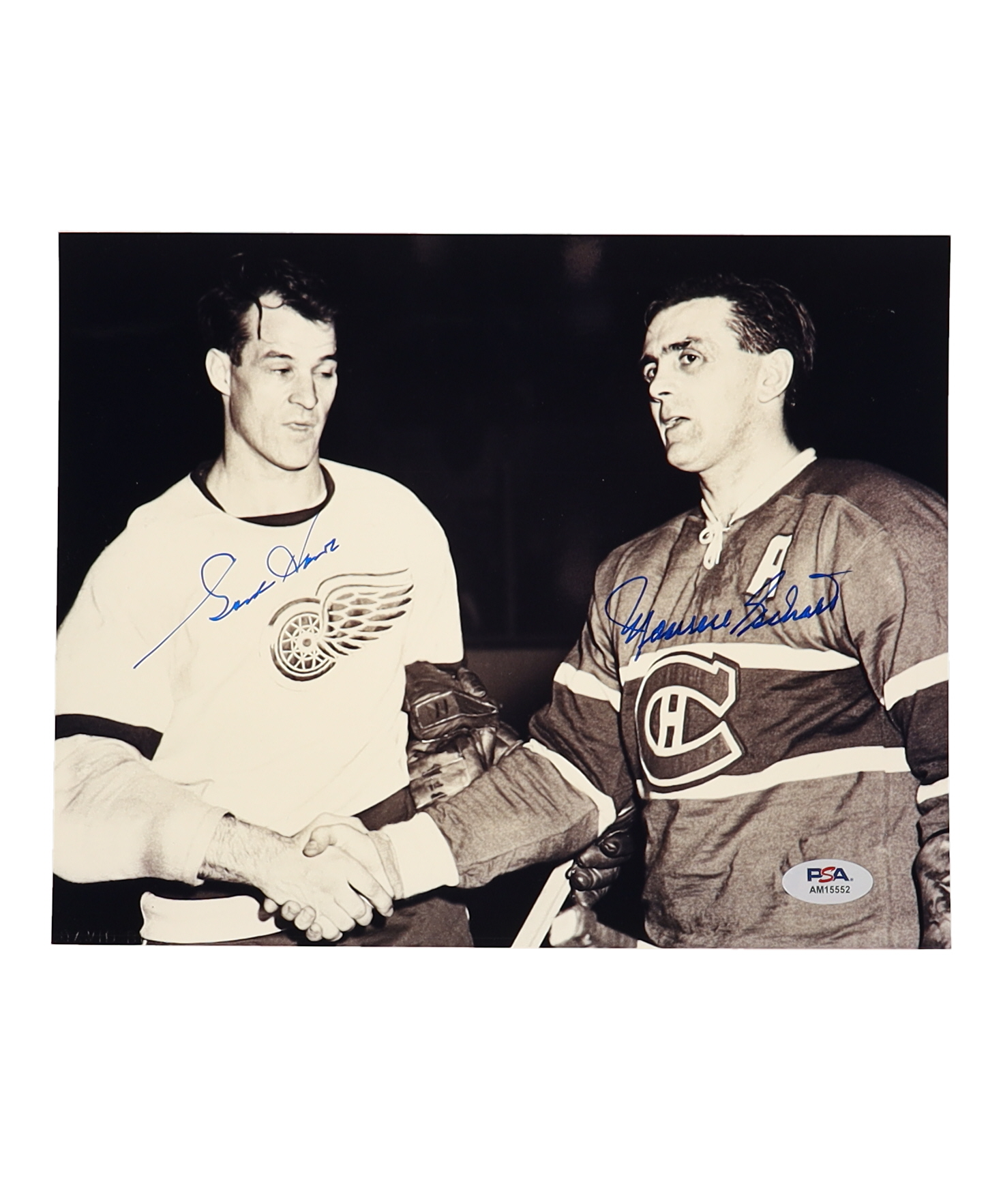 Gordie Howe & Maurice Richard Signed Red Wings / Canadiens 8x10 Photo (PSA)