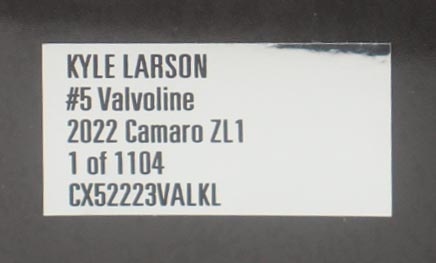 Chevy #5 Valvoline 2022 Camaro ZL1 1:24 Scale Die-Cast car has been hand-signed by Kyle Larson.